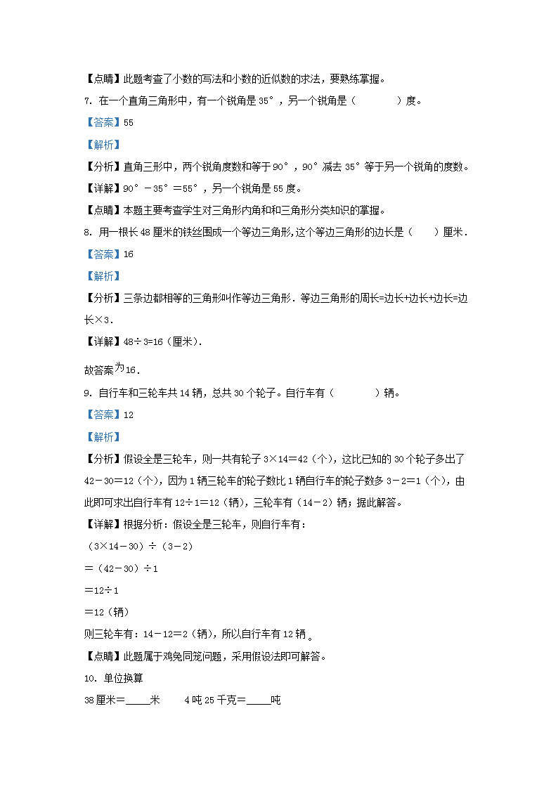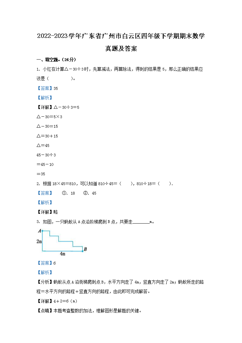 2022-2023学年广东省广州市白云区四年级下学期期末数学真题及答案(Word版)10-20