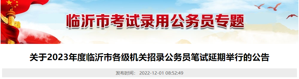 2023年山东临沂市各级机关招录公务员考试延期举行【另行通知】12-05