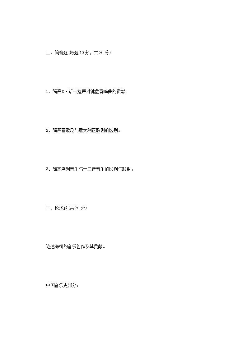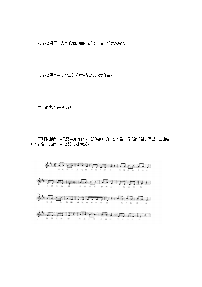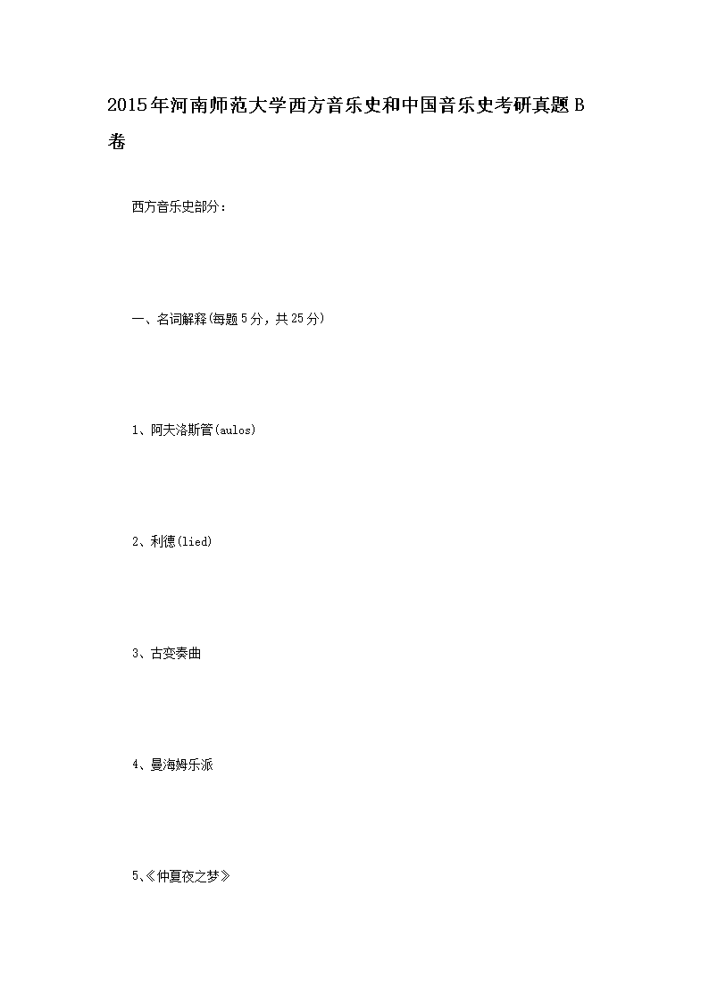 2015年河南师范大学西方音乐史和中国音乐史考研真题B卷(Word版)06-03
