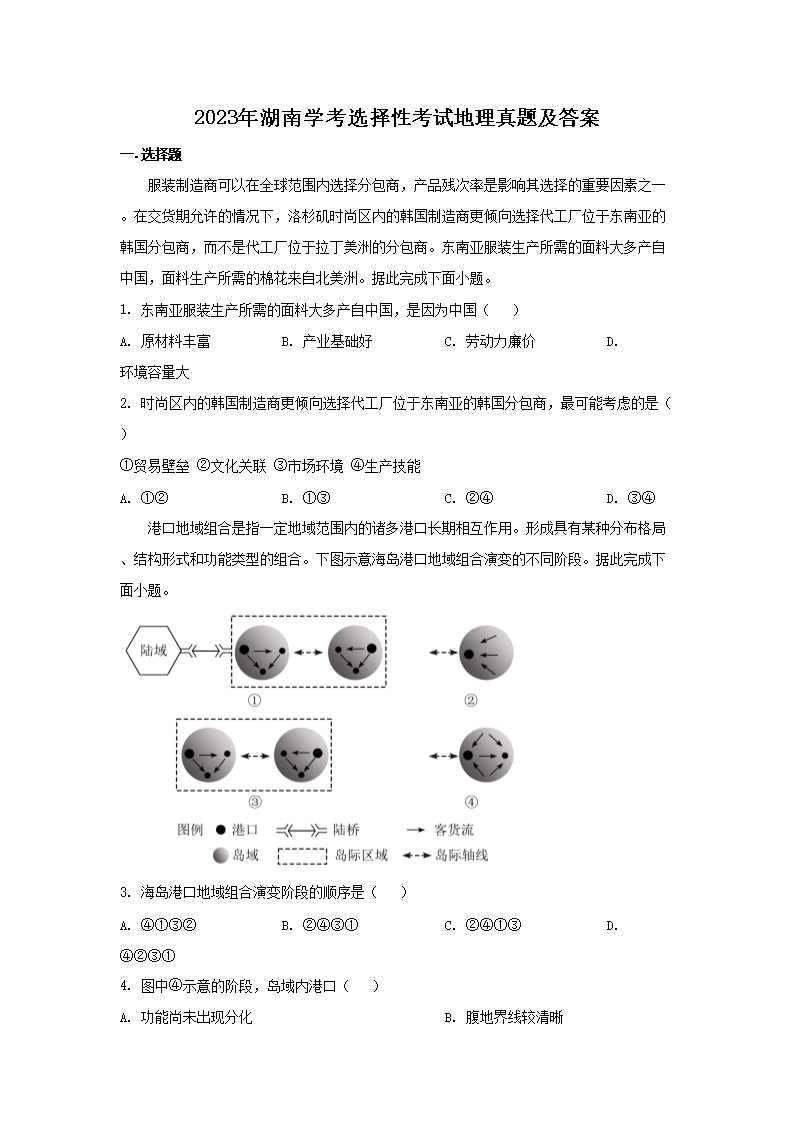 2023年湖南学考选择性考试地理真题及答案(Word版)06-16