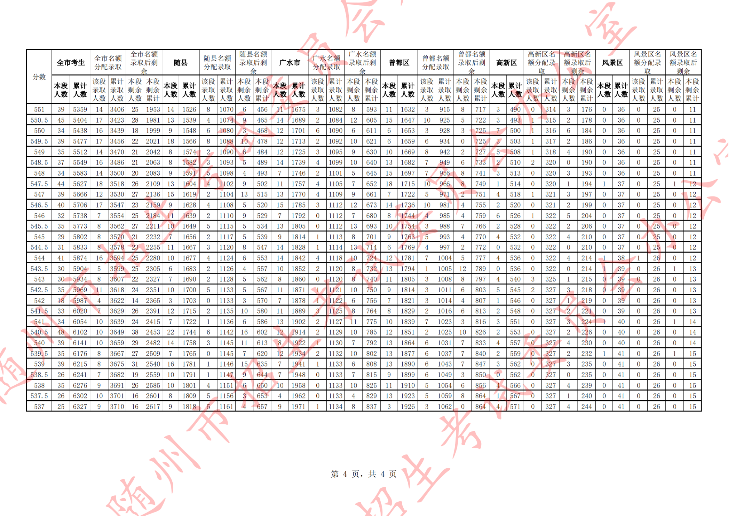 湖北随州2023年中考招生“名额分配”学生录取后剩余人数一分一段统计表07-07