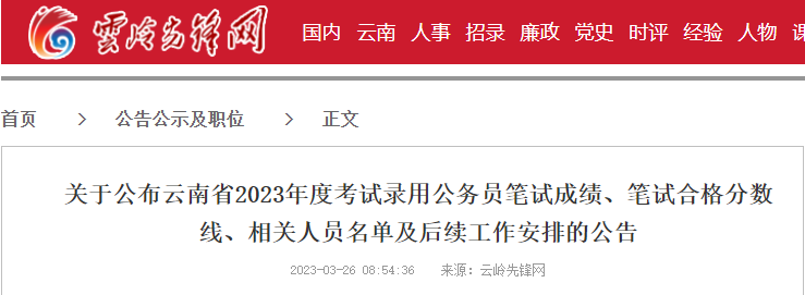 原文标题:关于公布云南省2023年度考试录用公务员笔试成绩、笔试合格分数线、相关人员名单及后续工作安排的公告