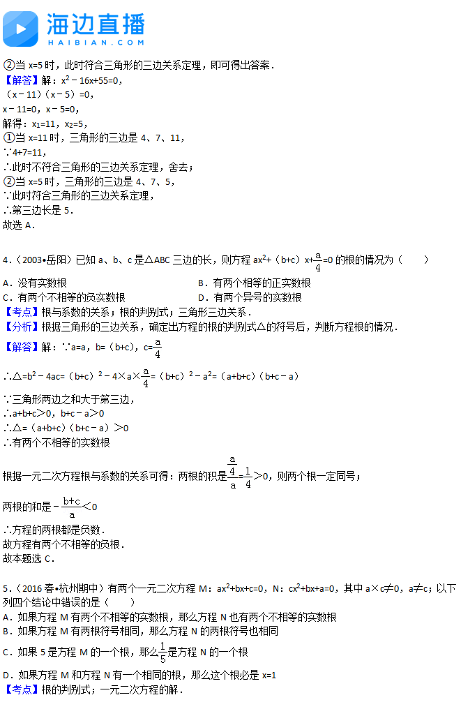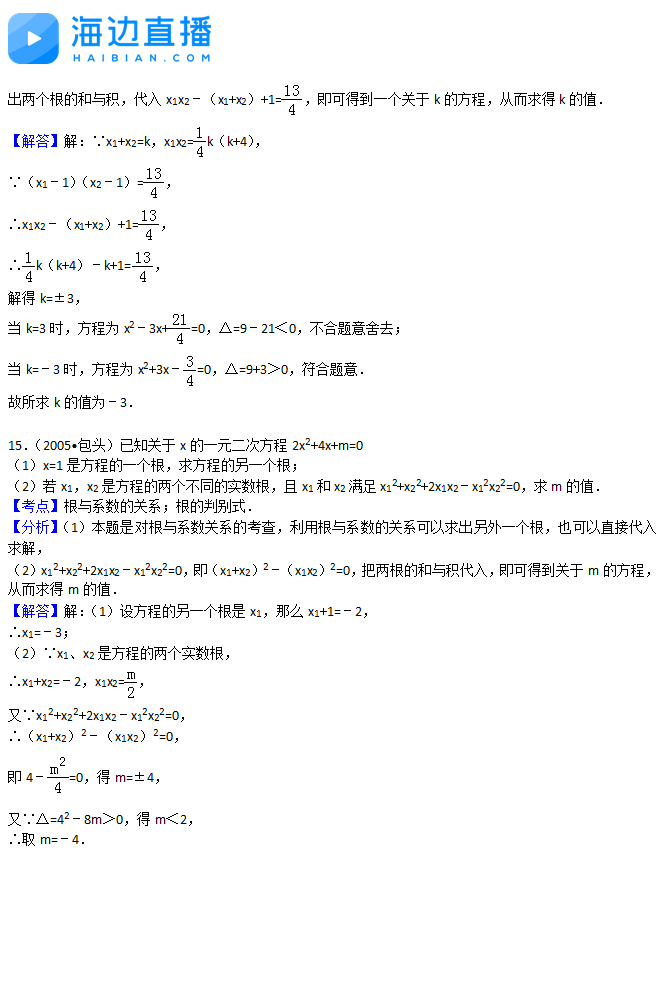 2017中考数学复习:一元二次方程易错题解析(三)06-25