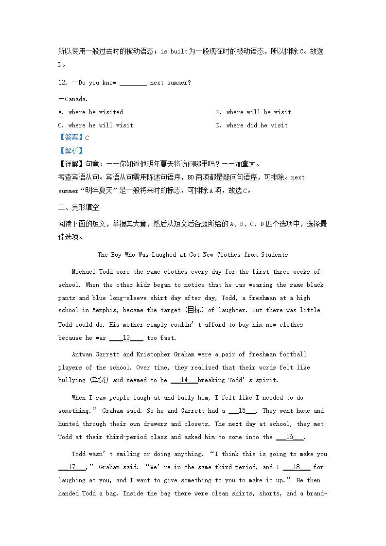 2020-2021学年北京通州区初三第一学期英语期末试卷及答案(Word版)08-11