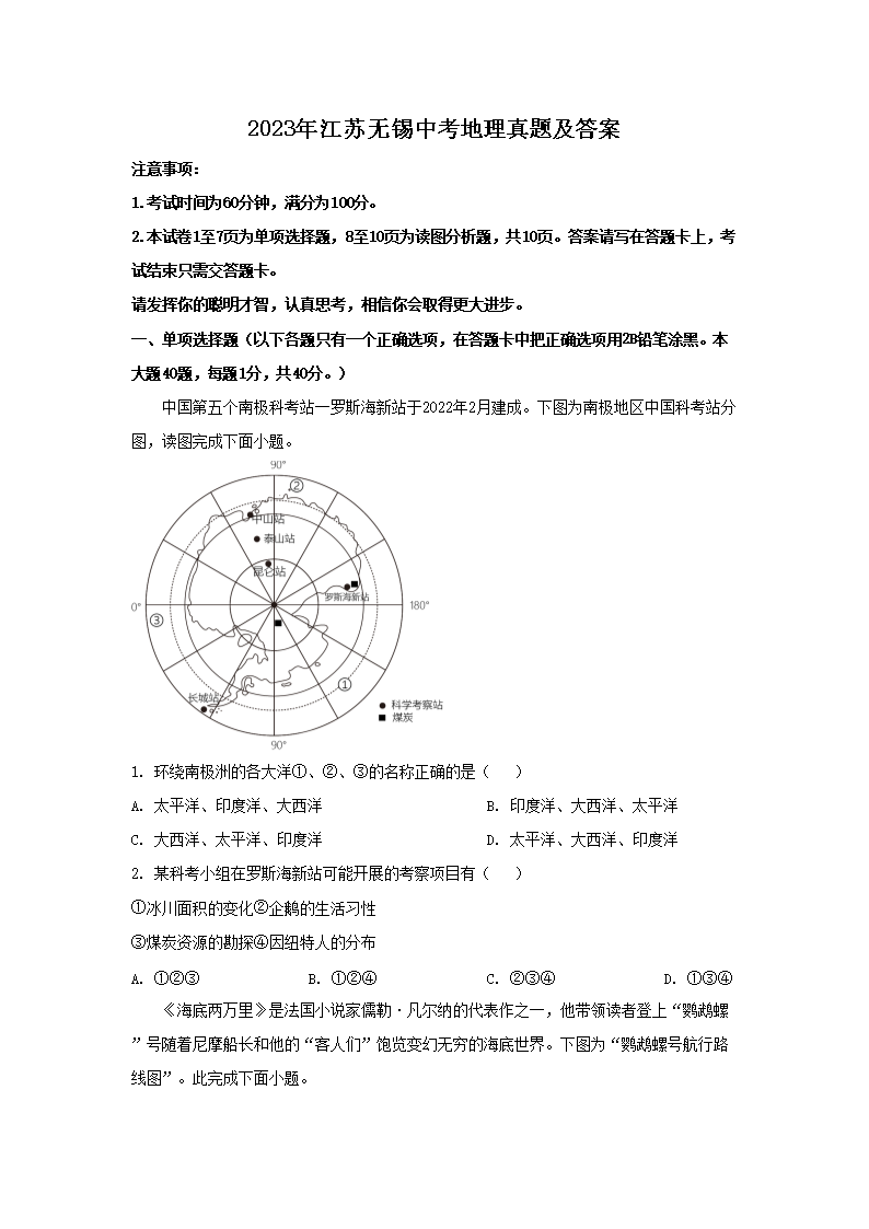 【文档预览】 文档大全网整理发布2023年江苏无锡中考地理真题及答案(Word版),前五页预览如下: