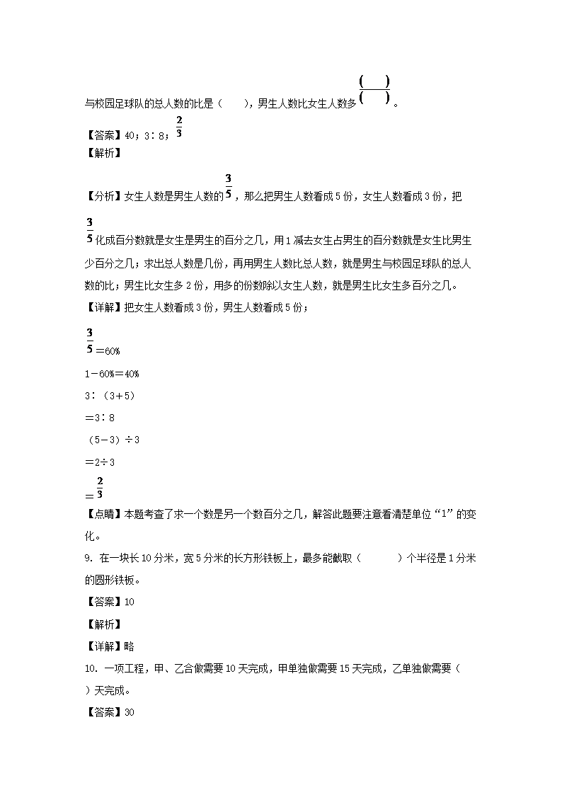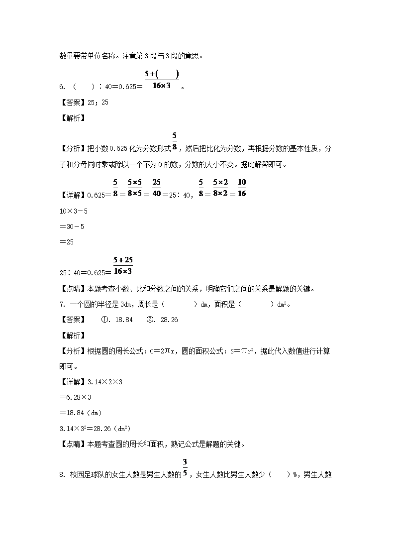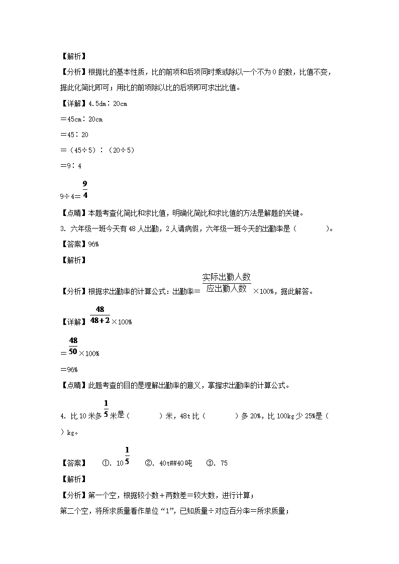 2021-2022年江西吉安市峡江县六年级上册期末数学试卷及答案(人教版)(Word版)10-14