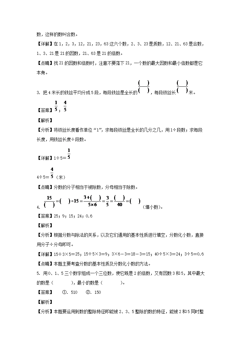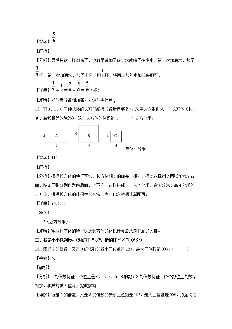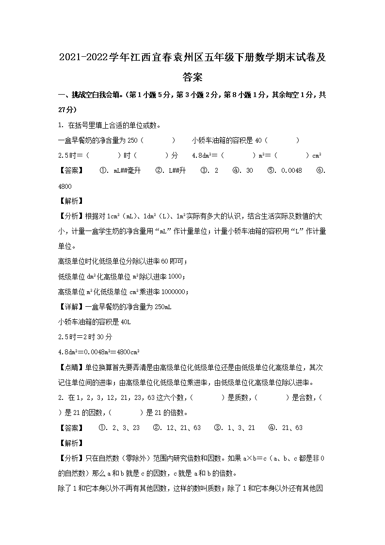 2021-2022学年江西宜春袁州区五年级下册数学期末试卷及答案(Word版)09-28