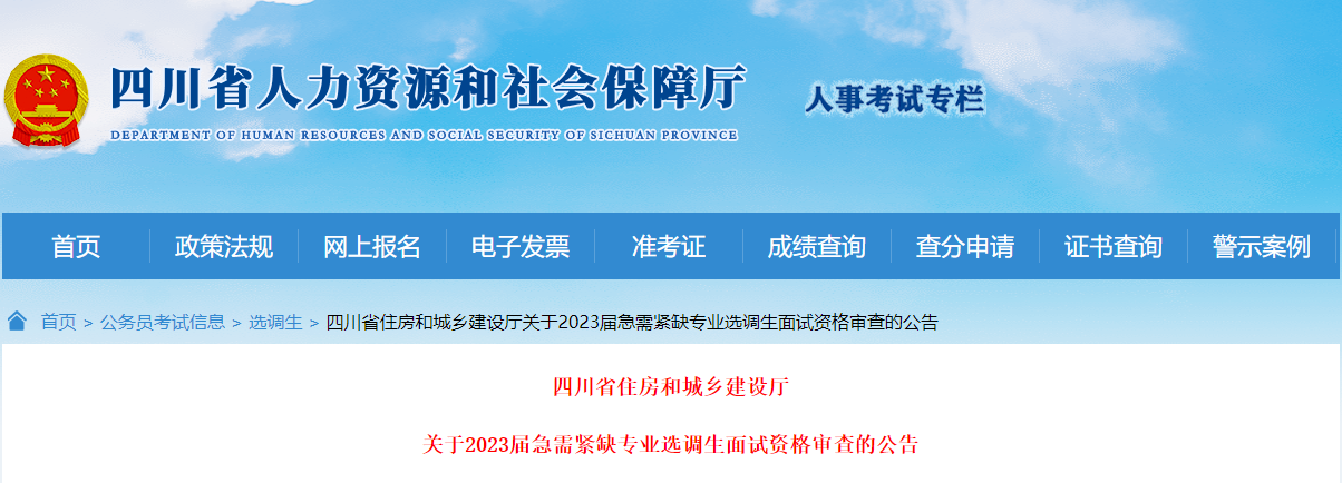 原文标题:四川省住房和城乡建设厅关于2023届急需紧缺专业选调生面试资格审查的公告