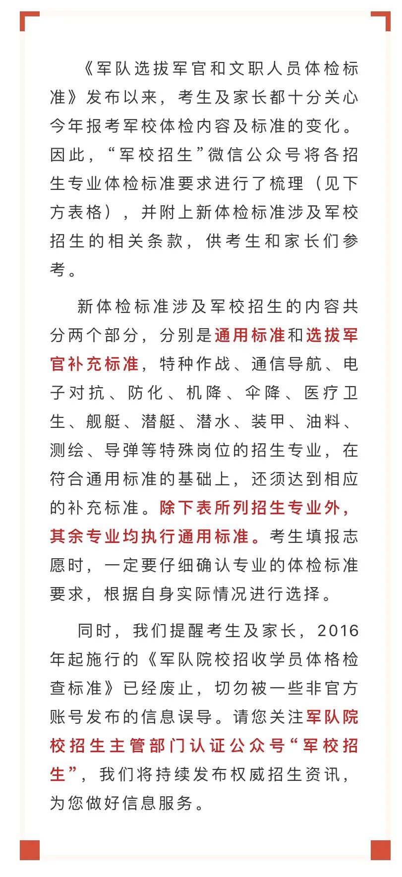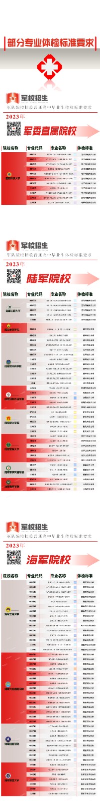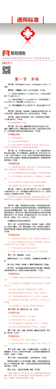 2023年军队院校招收普通高中毕业生体检标准要求公布06-12