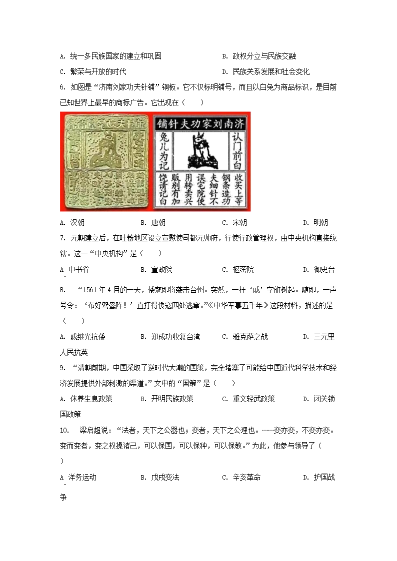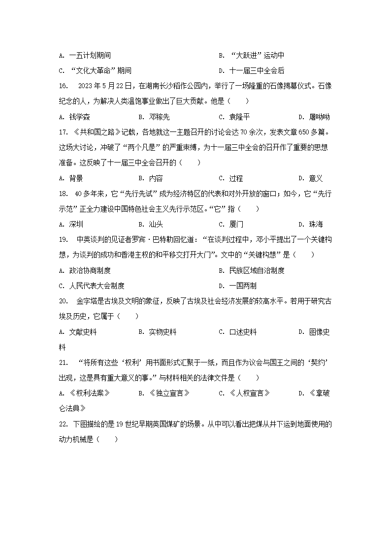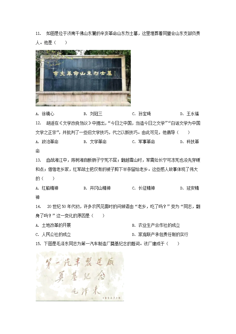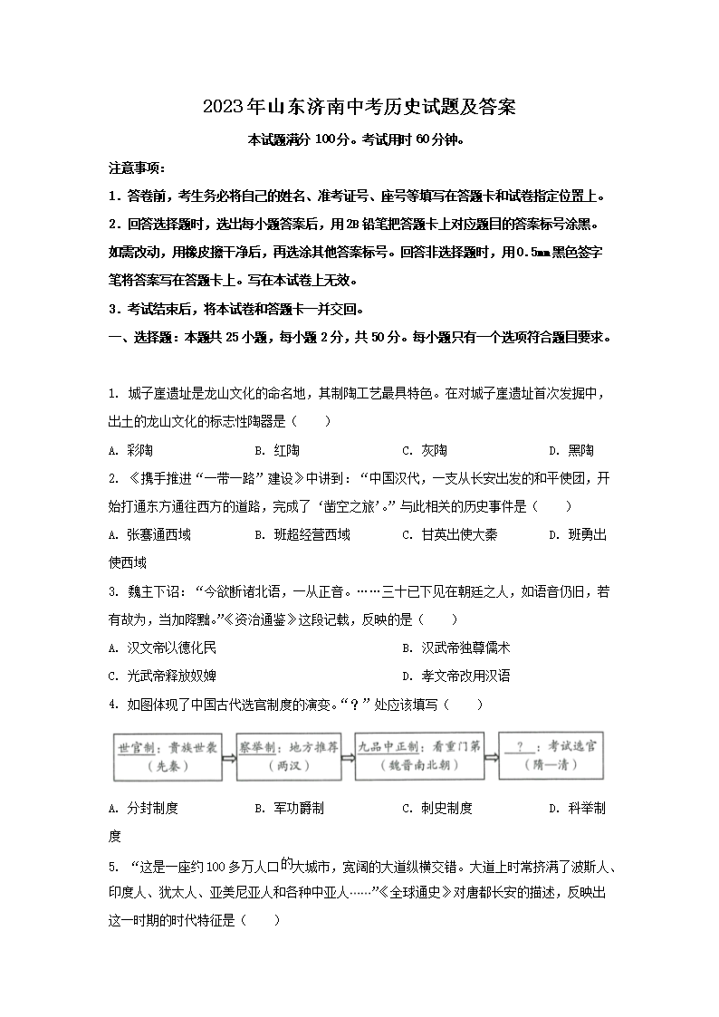 2023年山东济南中考历史试题及答案(Word版)08-10