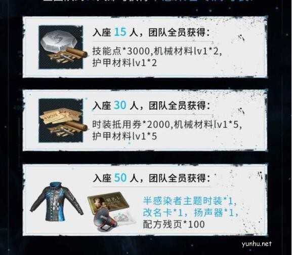 入团15人:技能点*3000、机械材料*2、护甲材料*2