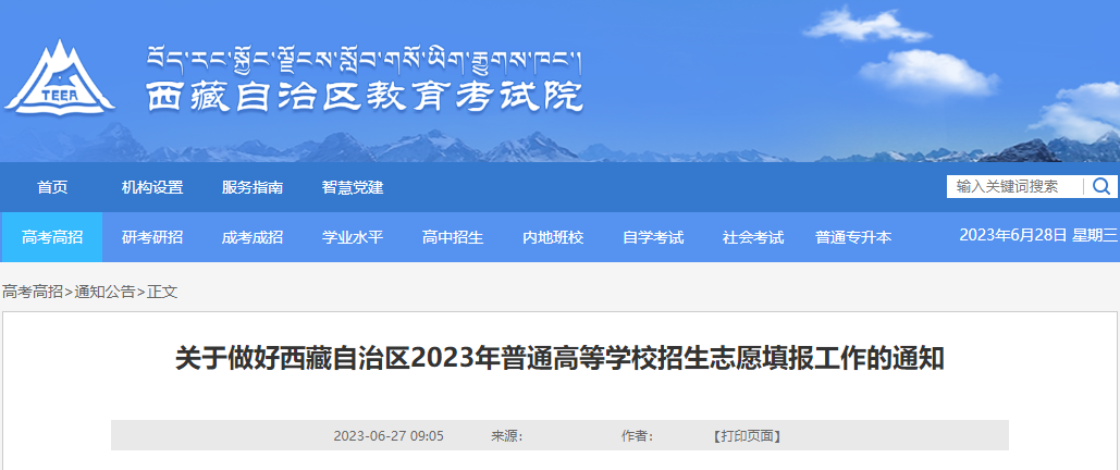 【#高考# 导语】®文档大全网从西藏教育考试院了解到,2023年西藏高考志愿填报在6月27日10时至7月3日24进行,志愿填报流程及填报方法如下: