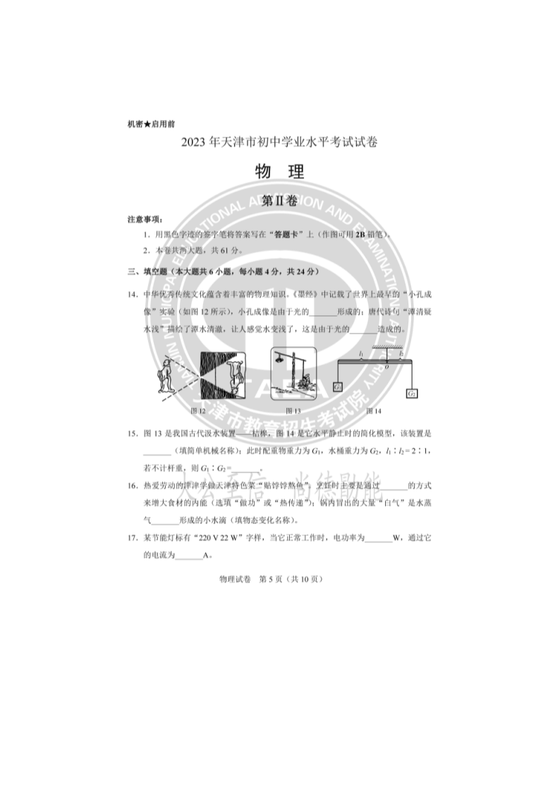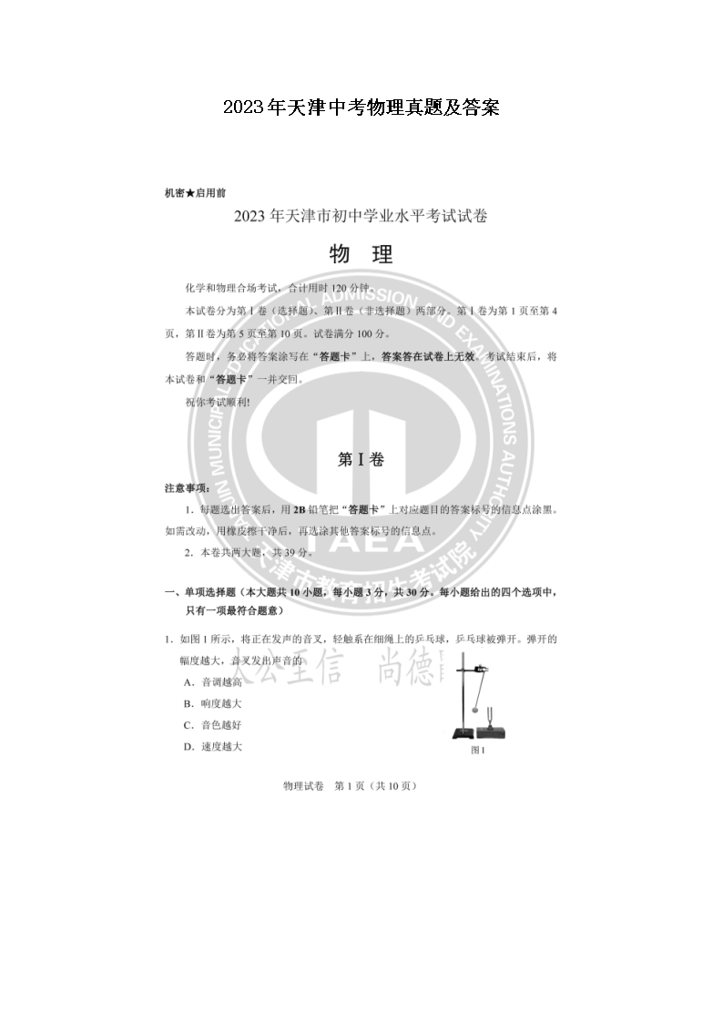 【文档预览】 文档大全网整理发布2023年天津中考物理真题及答案(图片版),前五页预览如下: