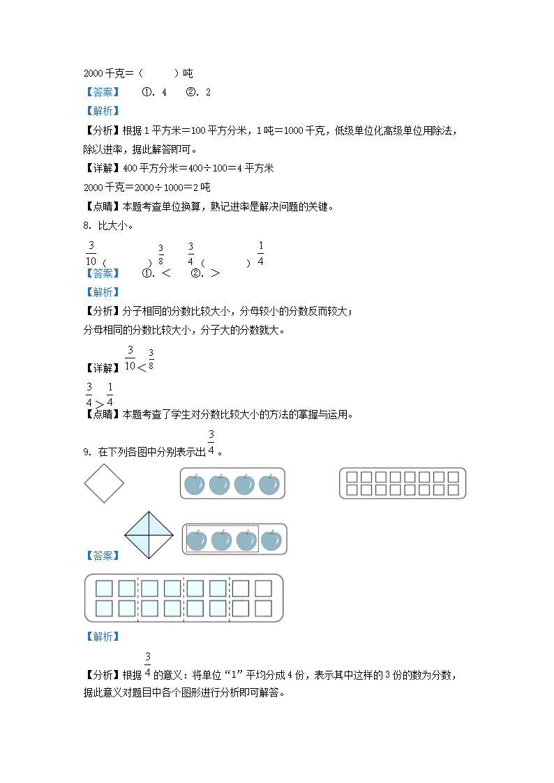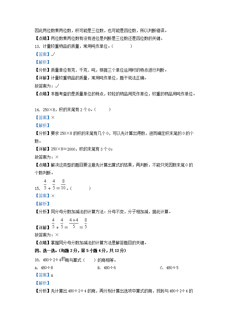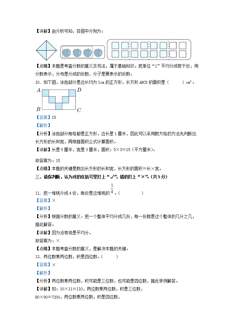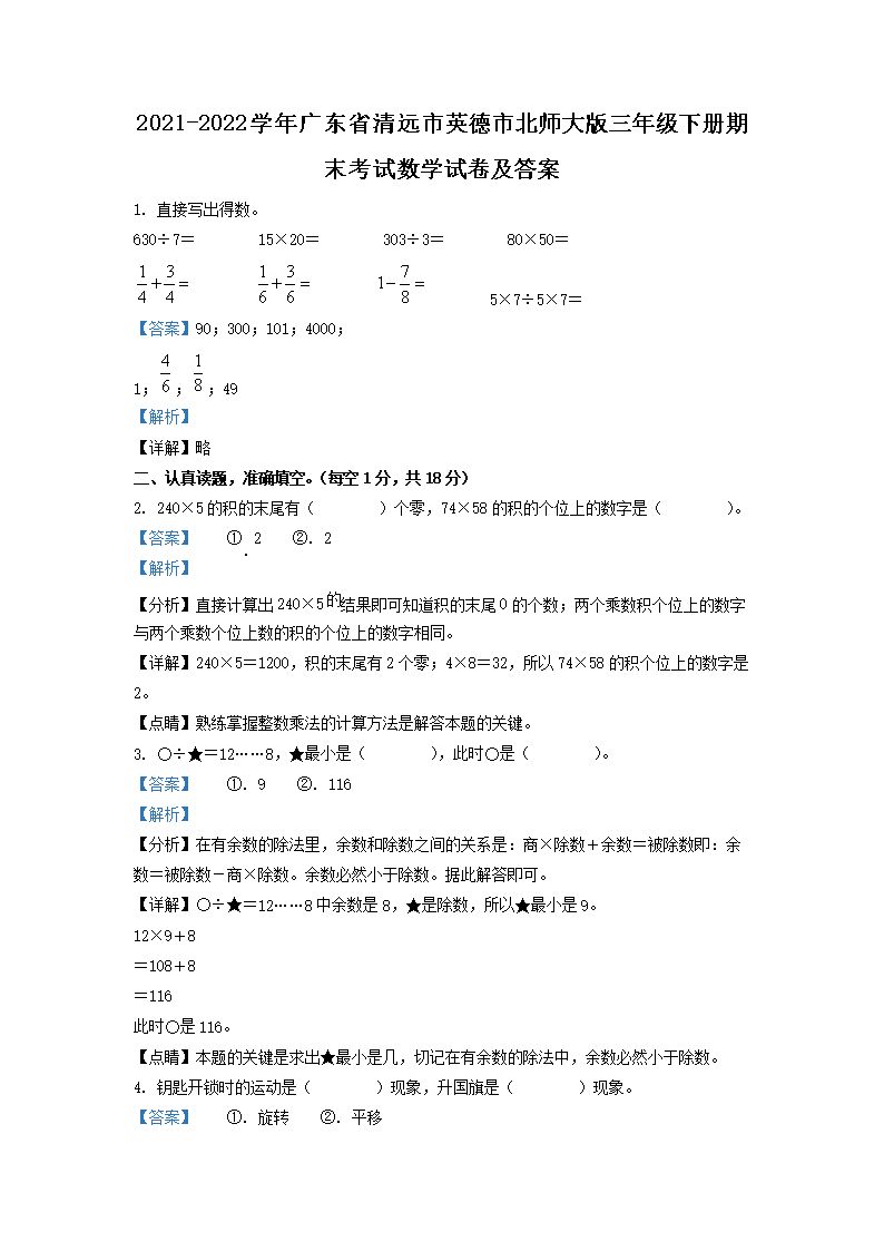 2021-2022学年广东省清远市英德市北师大版三年级下册期末考试数学试卷及答案(Word版)08-30
