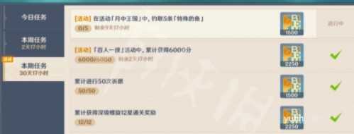 完成各项活动任务及挑战,即有机会获得活动限定鱼竿「长绳系月」、原石、神秘摆设鱼等奖励。