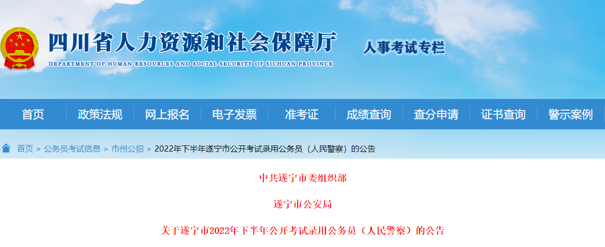 原文标题:关于泸州市2022年下半年公开考试录用公务员(人民警察)的公告