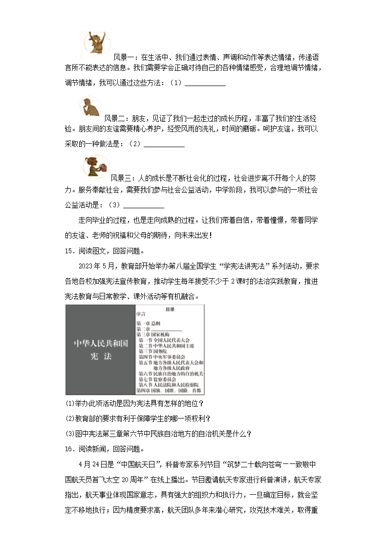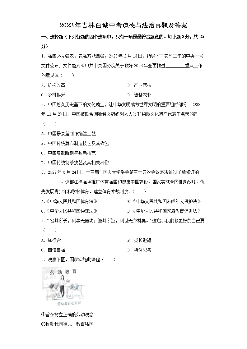 2023年吉林白城中考道德与法治真题及答案(Word版)07-11