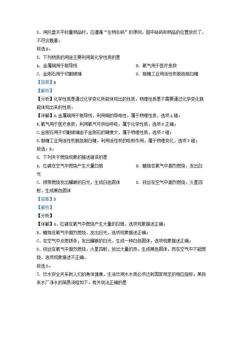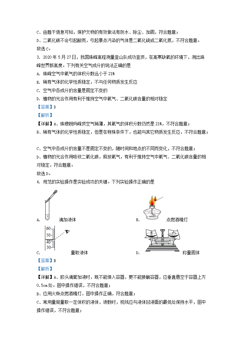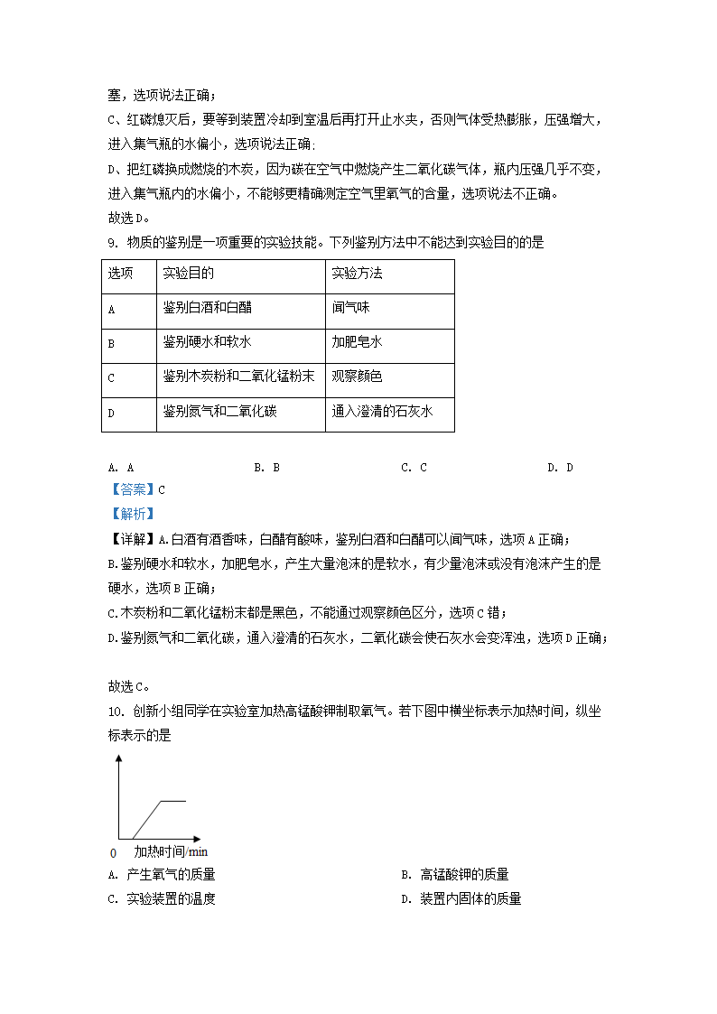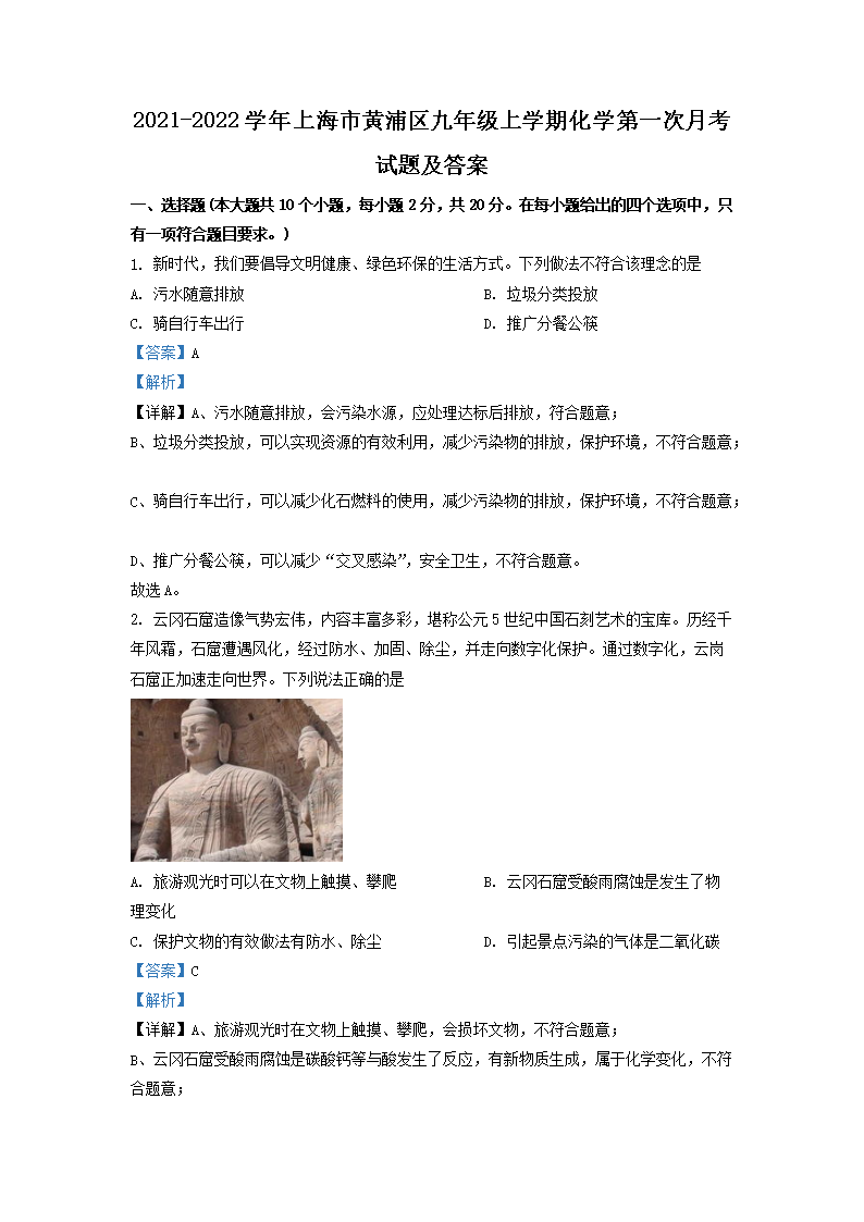2021-2022学年上海市黄浦区九年级上学期化学第一次月考试题及答案(Word版)10-20