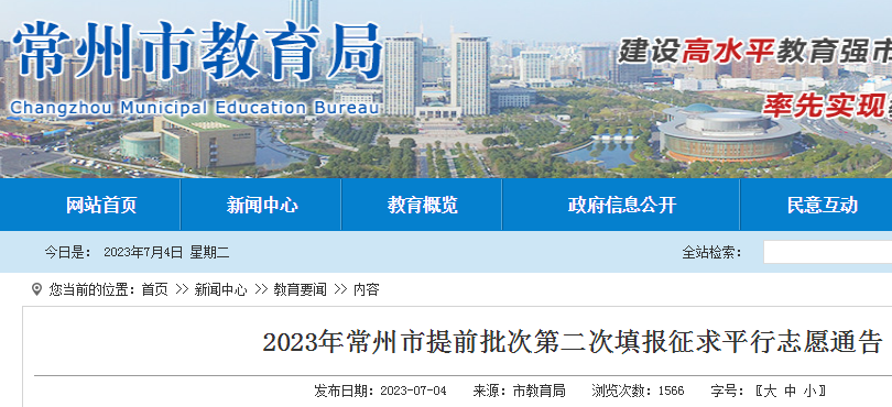 7月4日20:00起,考生可登录“常州中招系统”查询本次征平录取结果。