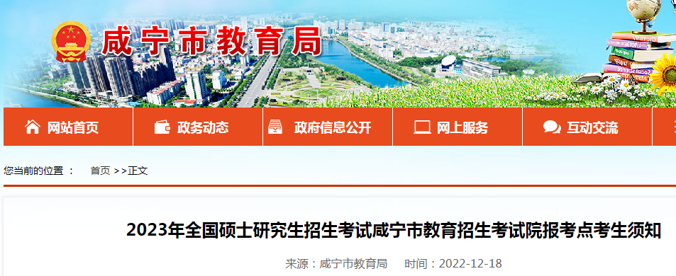 2023年研考湖北咸宁市教育招生考试院报考点考生须知(考试时间2022年12月24日至26日)12-20