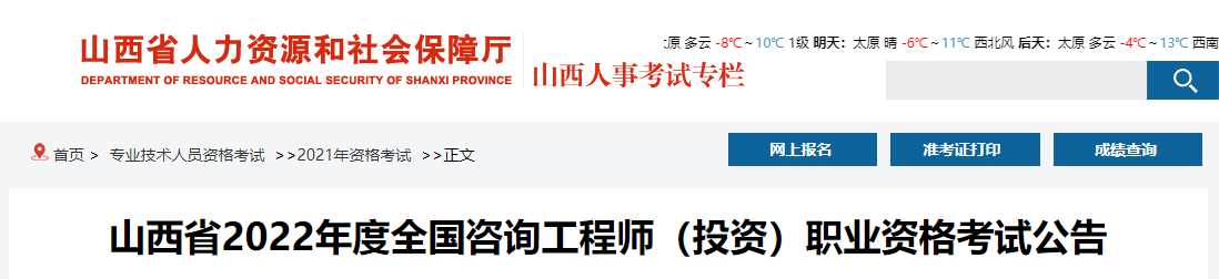 根据《山西省人事考试中心关于做好山西省2022年度全国咨询工程师(投资)职业资格考试考务工作的通知》(晋人考函〔2022〕1号)安排,现将有关事项公告如下: