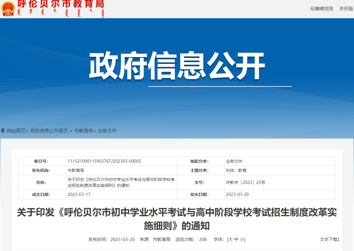 原文标题:呼伦贝尔市初中学业水平考试与高中阶段学校考试招生制度改革实施细则