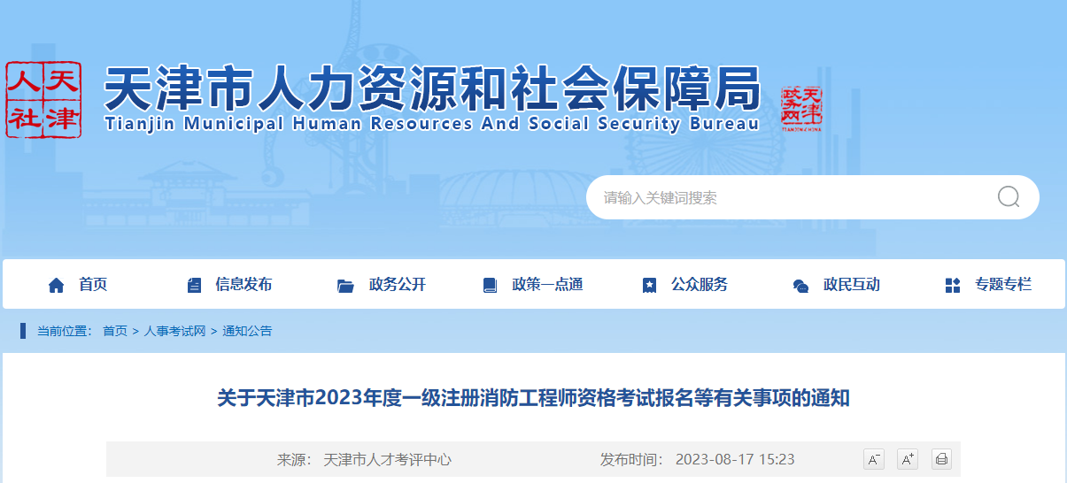 2023年天津一级消防工程师报名时间及报名入口[8月24日-9月2日]08-24