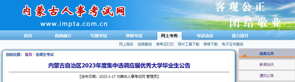 2023年内蒙古集中选调生报名时间:2月1日-9日01-20