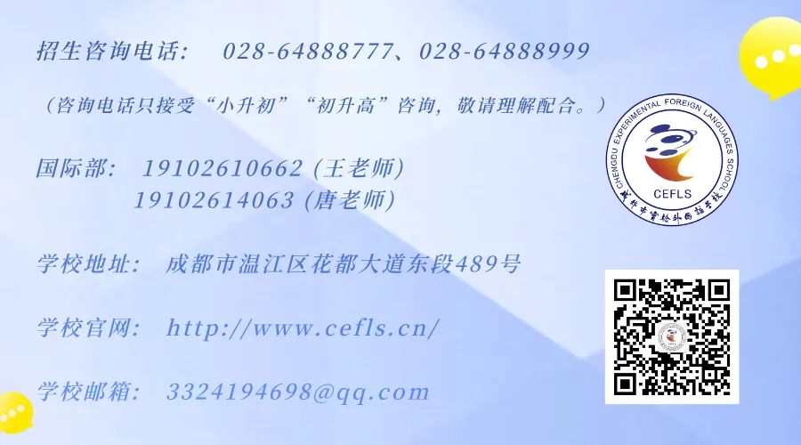 作为成都市实验外国语学校2023年“小升初”招生工作的主体,我校严格遵循招生工作相关的法律、法规和文件要求,未委托任何个人、社会培训机构招生。