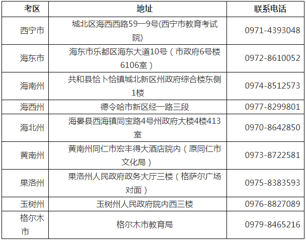 青海省自学考试各考区联系方式及地址: