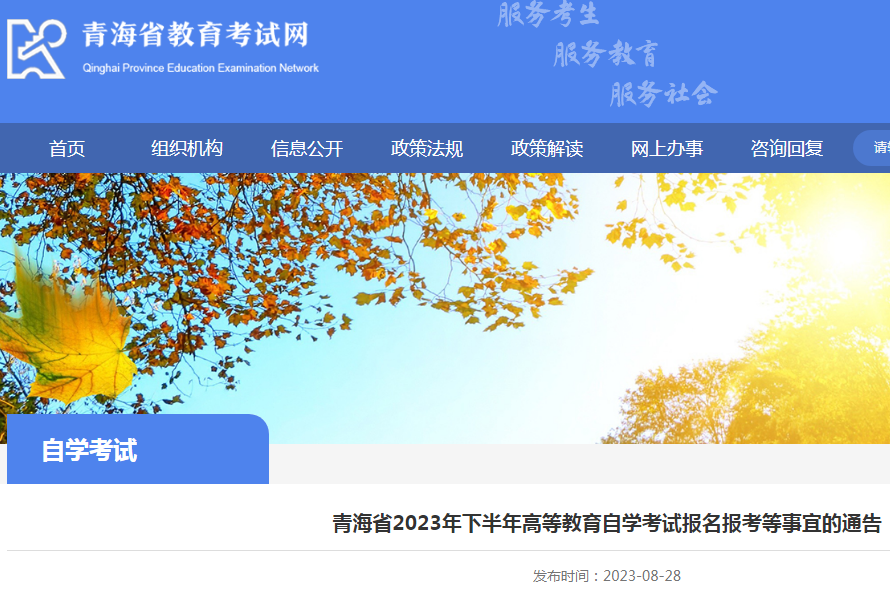 1.报名报考详细事宜请考生登录青海省教育考试网查看《青海省2023年下半年高等教育自学考试报名报考简章》。