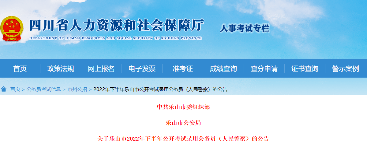 原文标题:关于乐山市2022年下半年公开考试录用公务员(人民警察)的公告