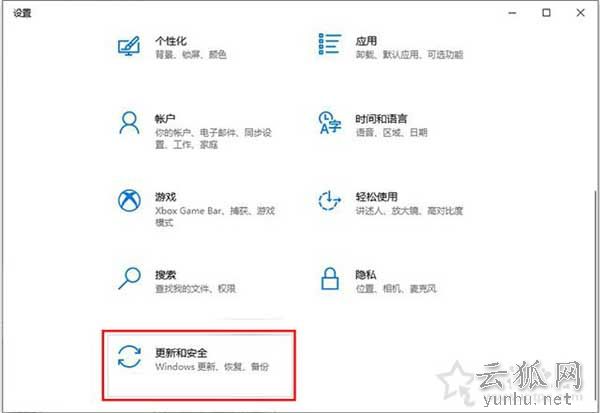 2、在windows设置界面,我们下拉到最底,点击“更新和安全”,如下图所示。