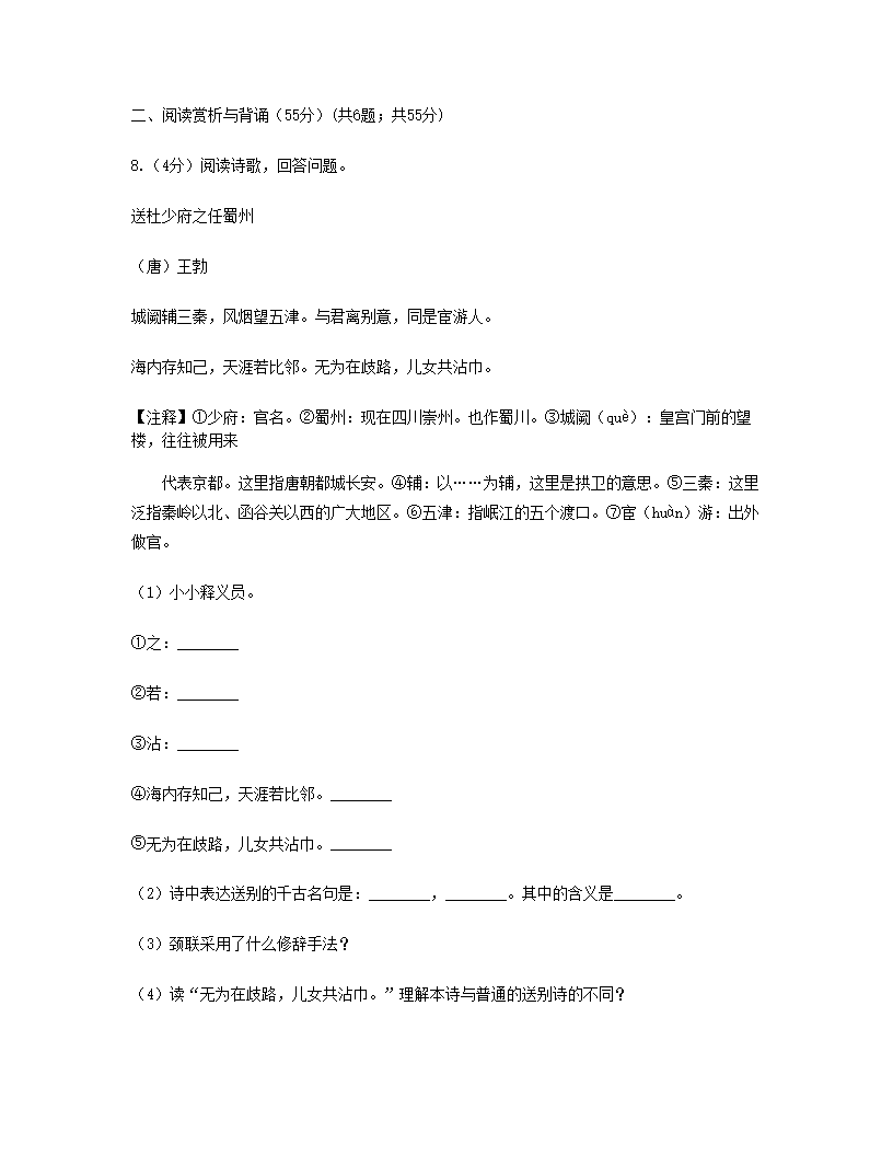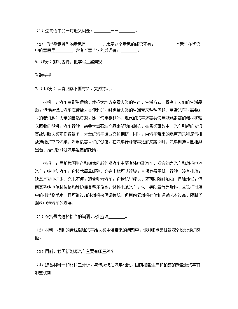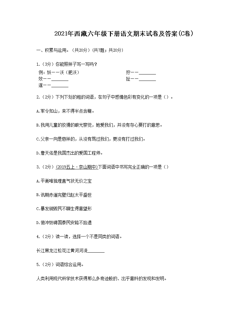 2021年西藏六年级下册语文期末试卷及答案(C卷)(Word版)07-29