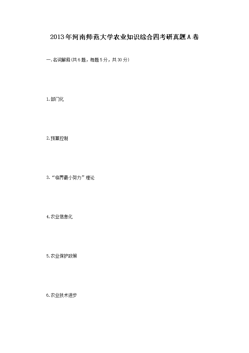 【文档预览】 文档大全网整理发布2013年河南师范大学农业知识综合四考研真题A卷(Word版),前五页预览如下:
