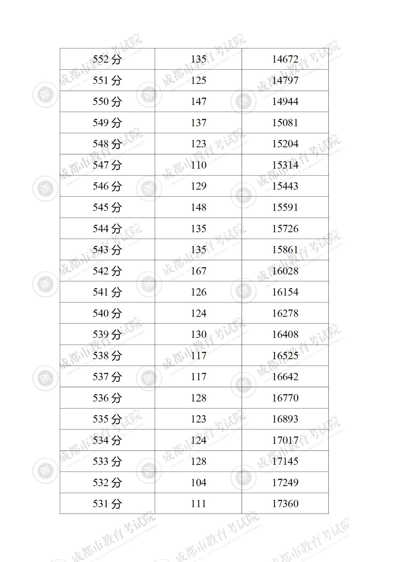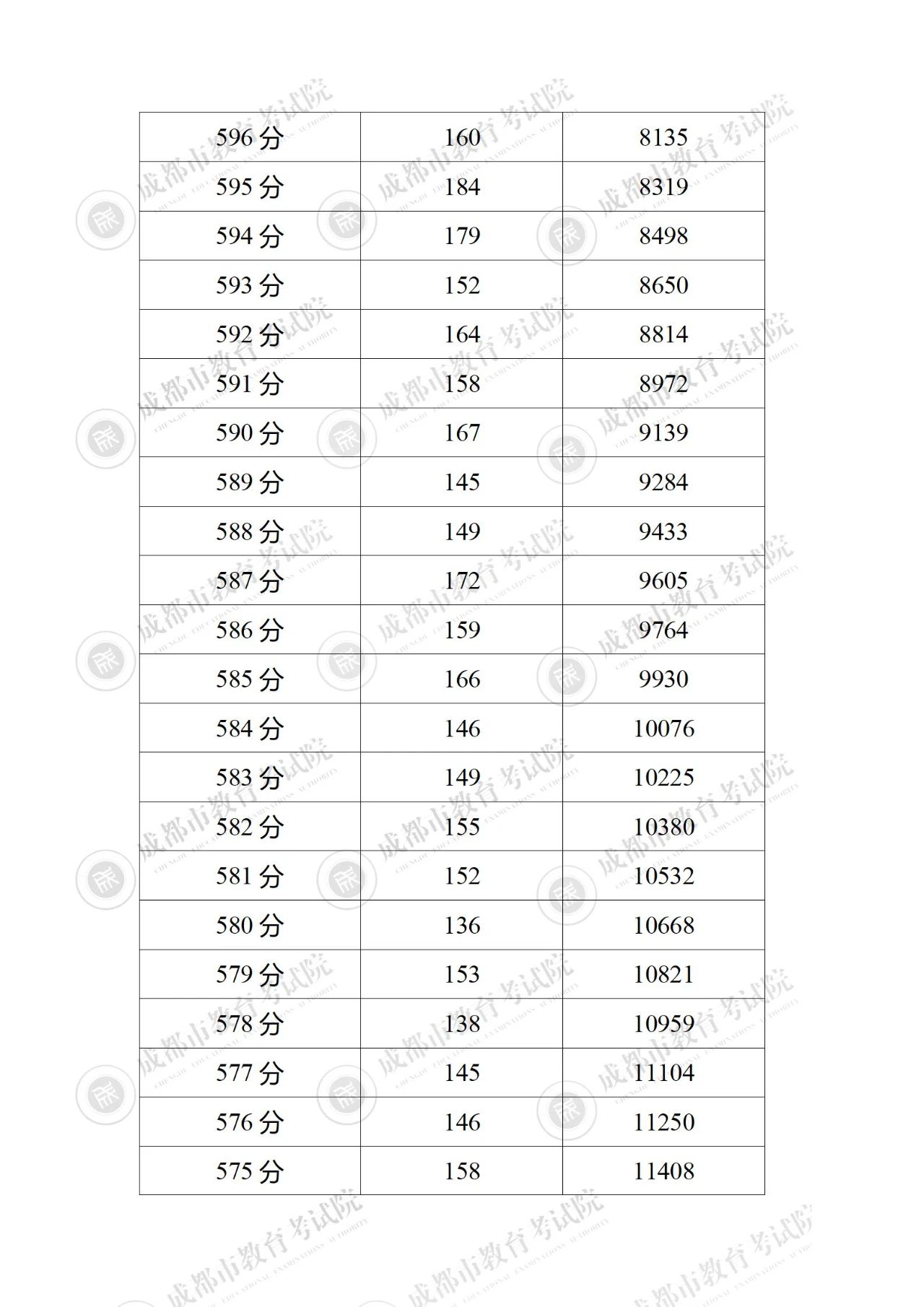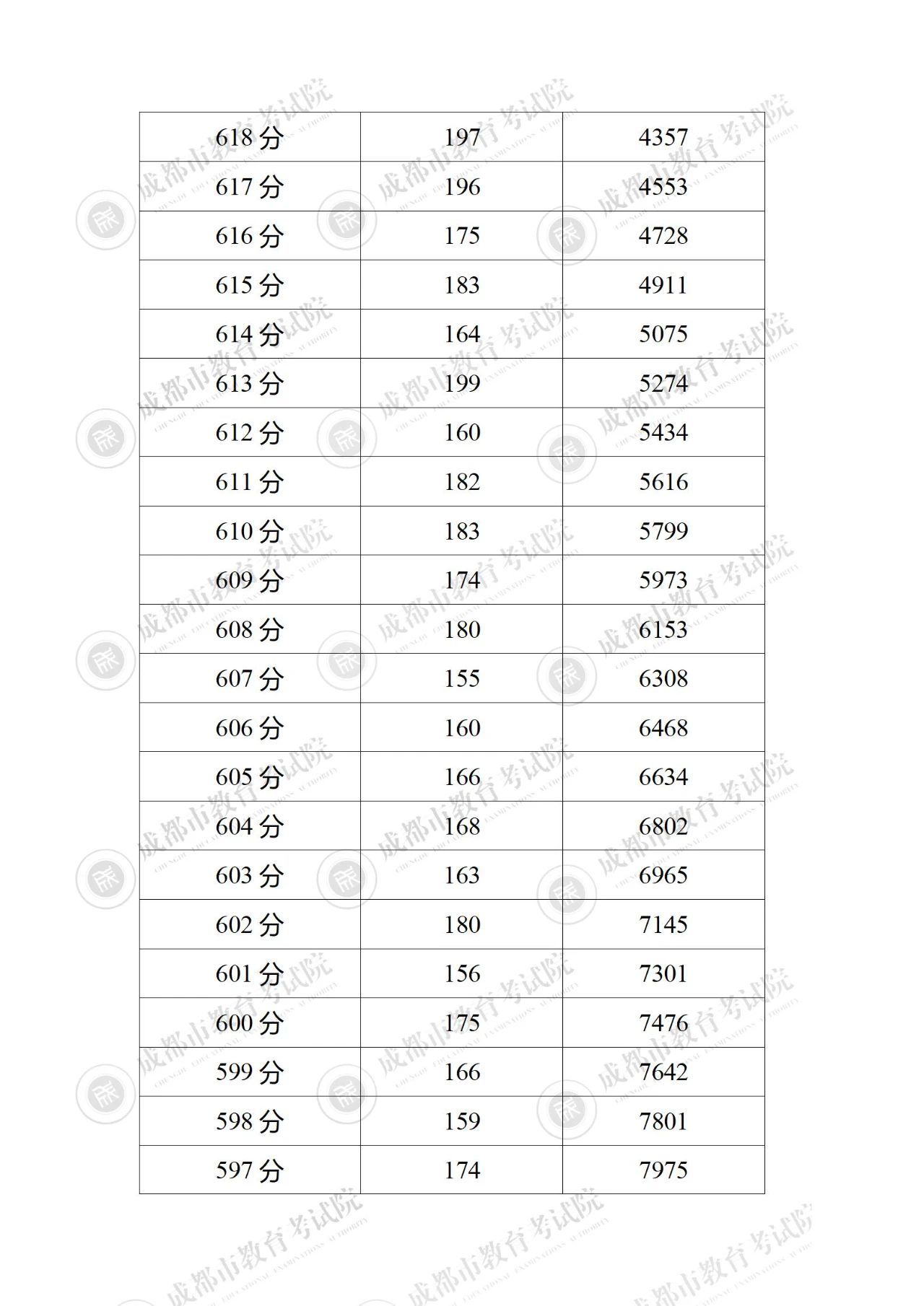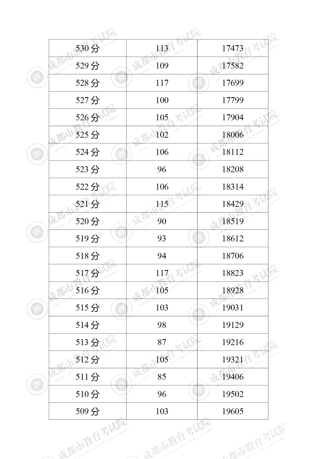 2023年四川成都中考成绩分段统计表公布06-28