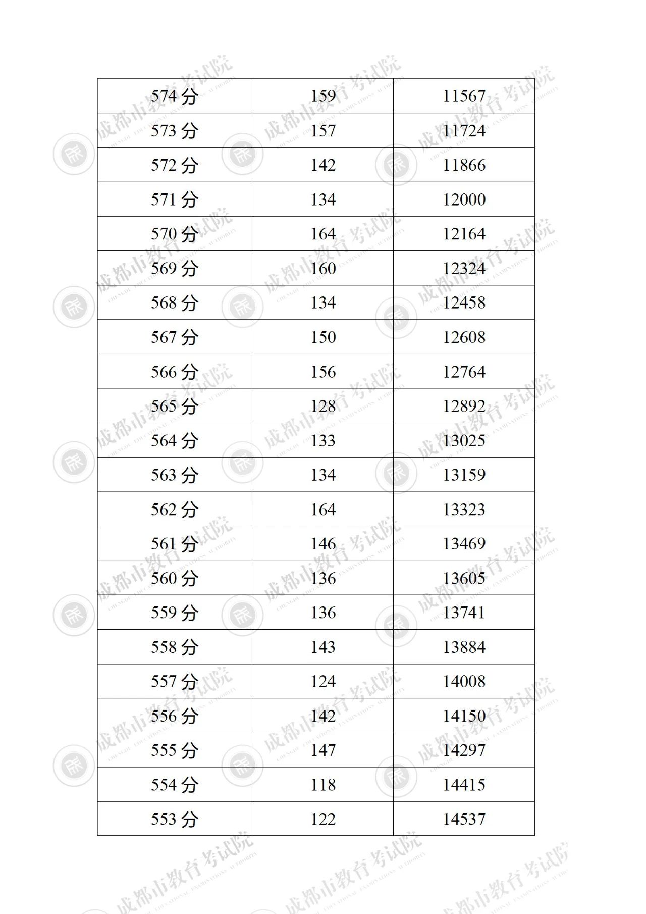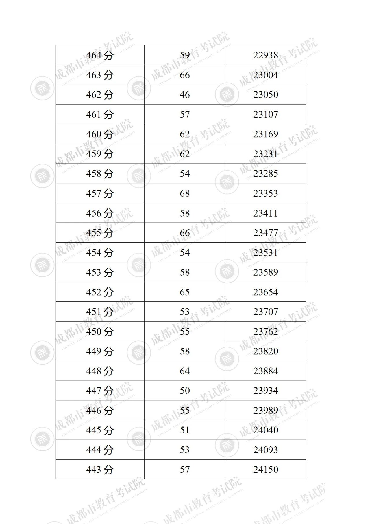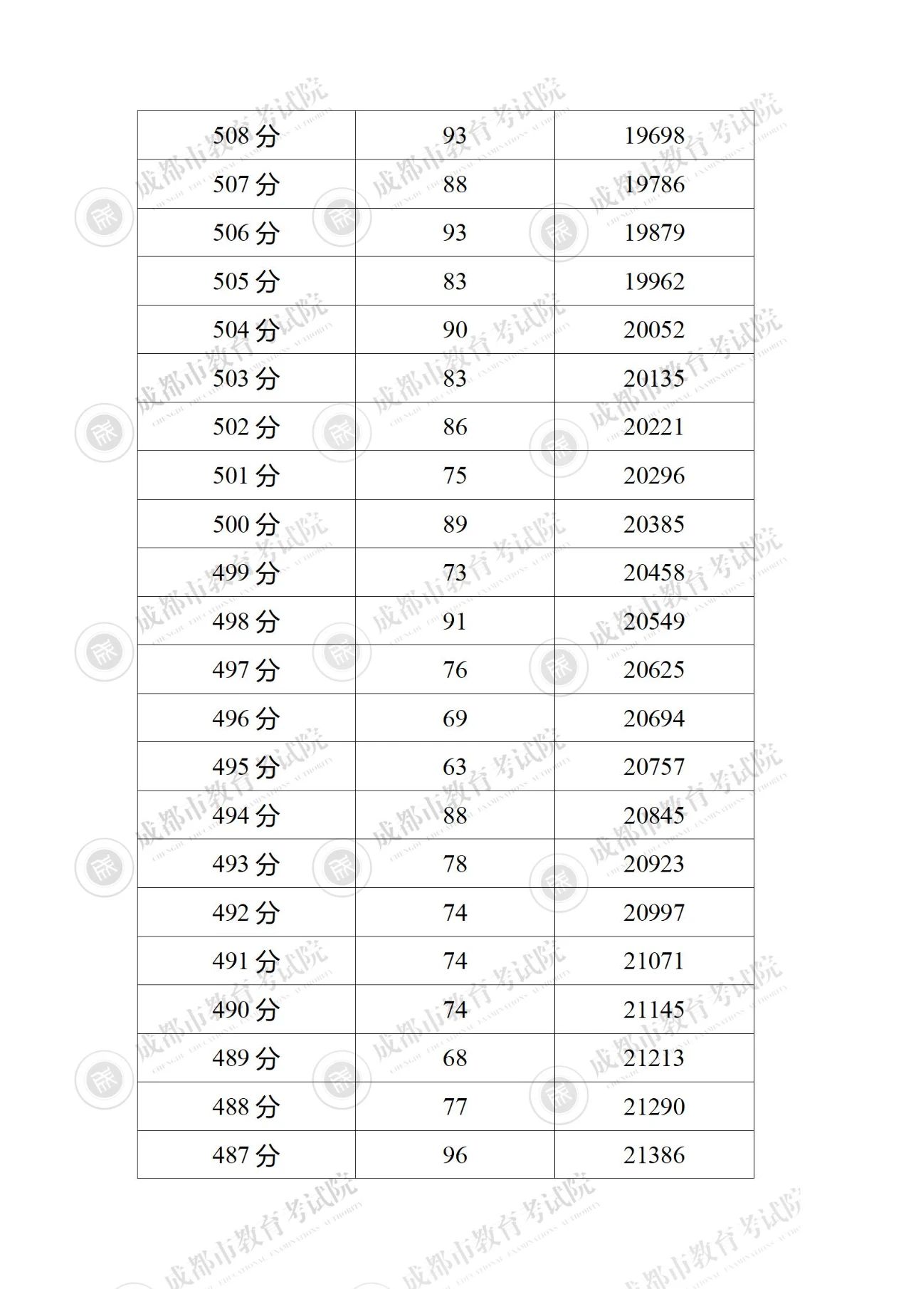 2023年四川成都中考成绩分段统计表公布06-28
