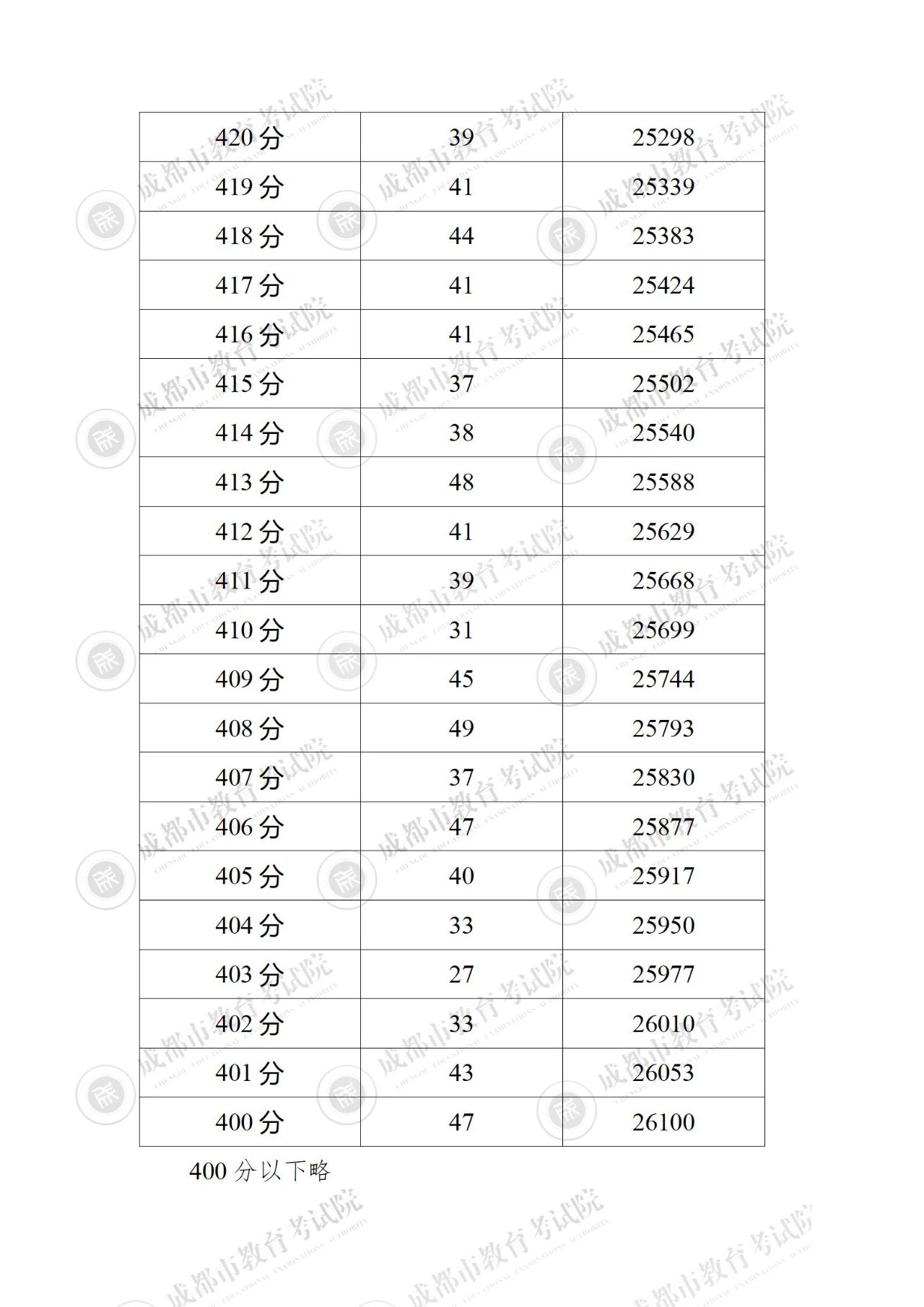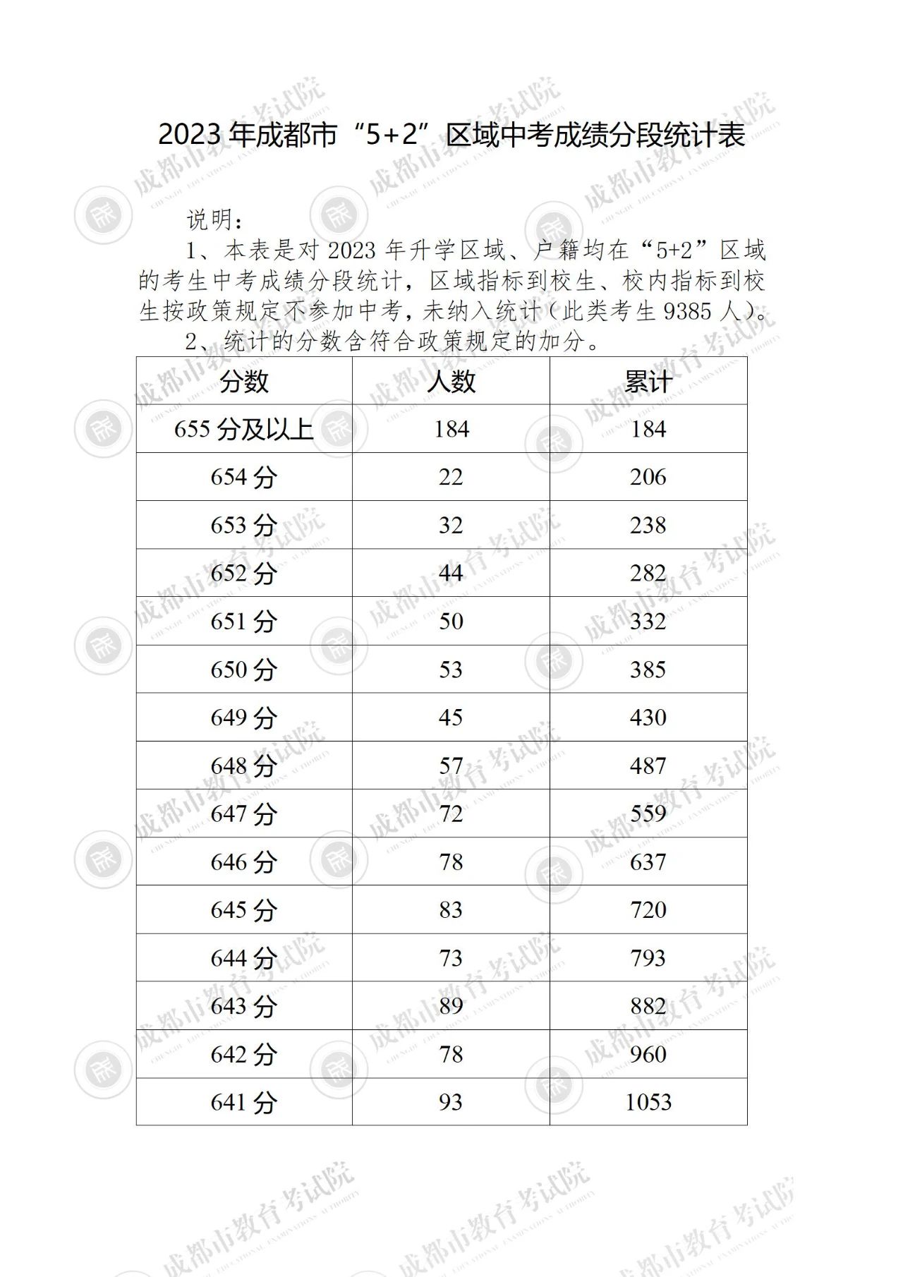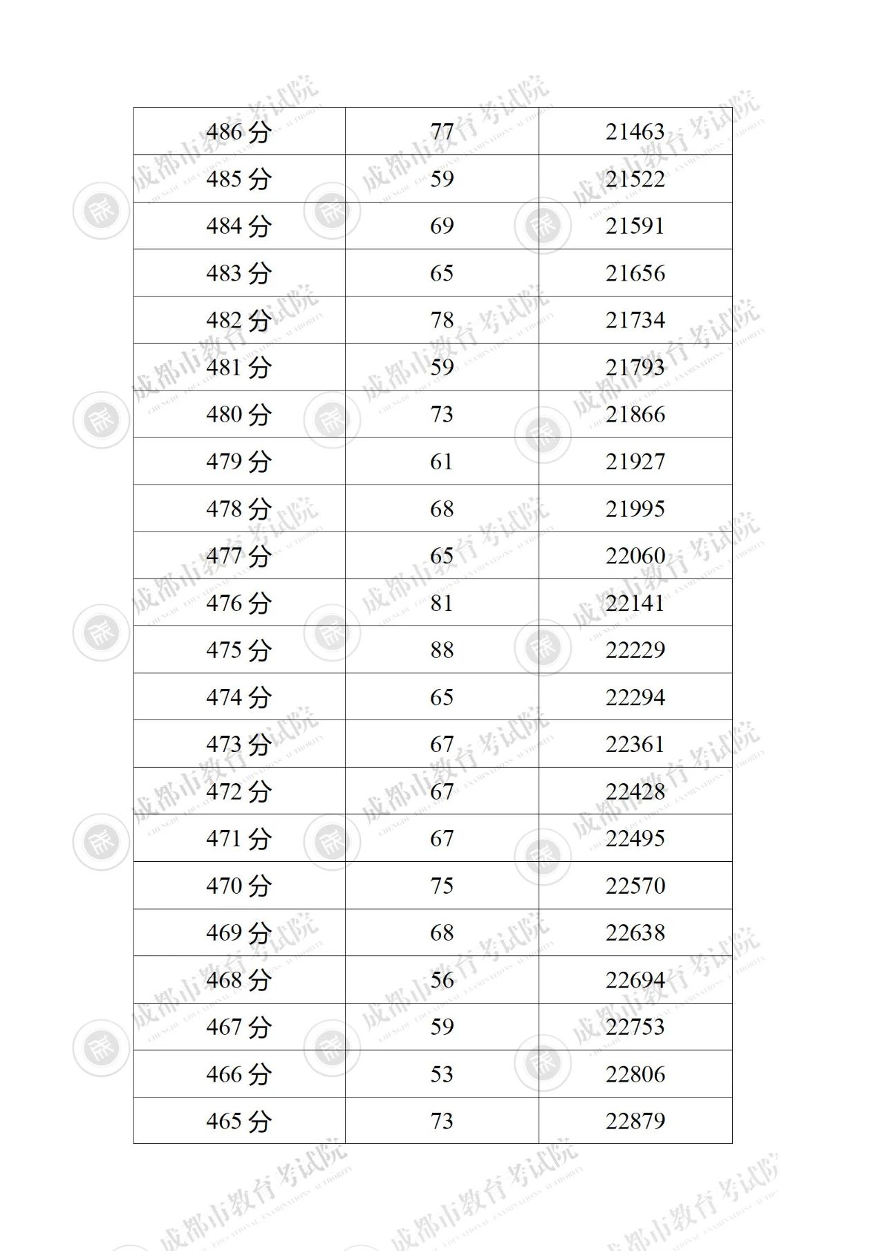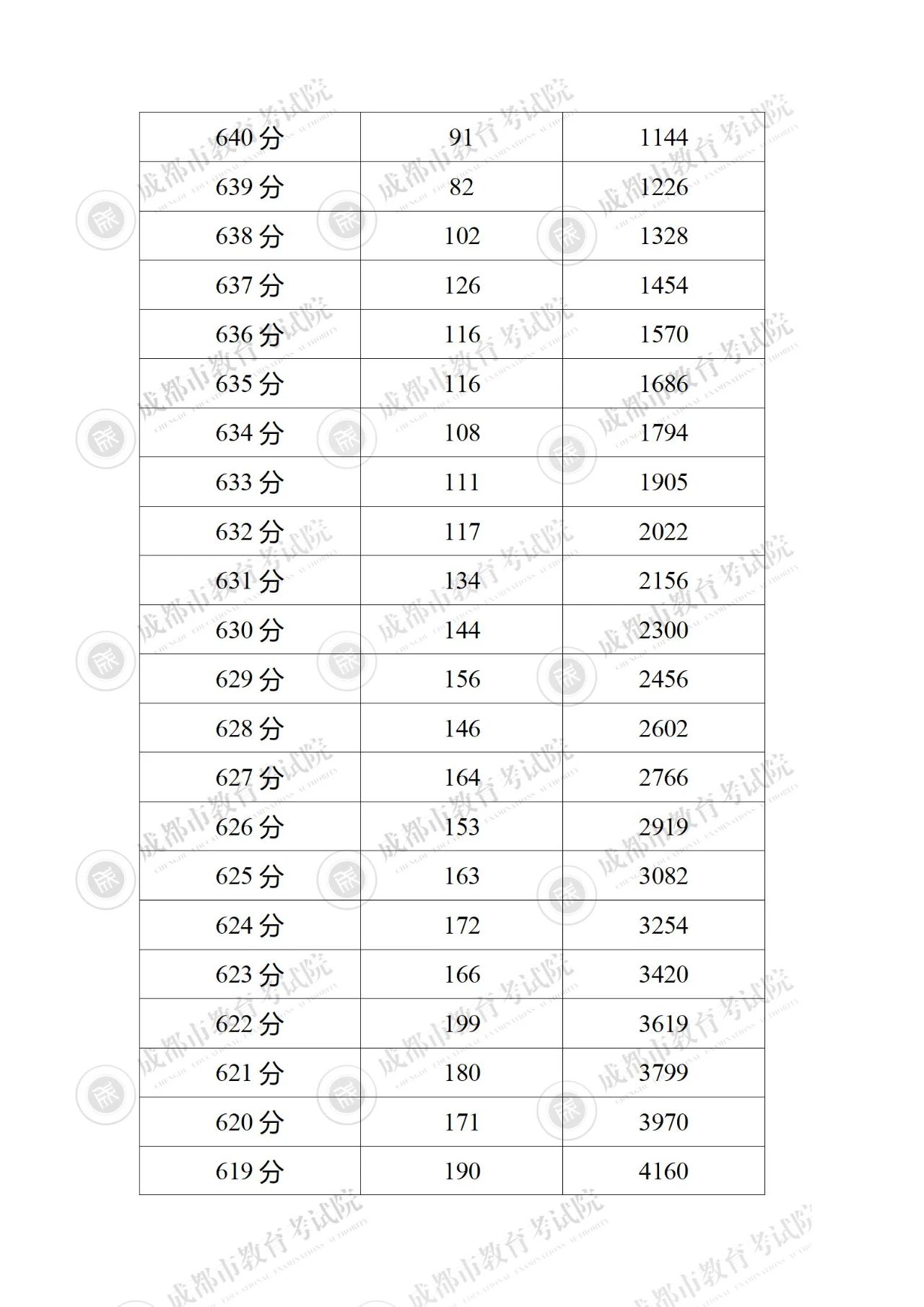 2023年四川成都中考成绩分段统计表公布06-28