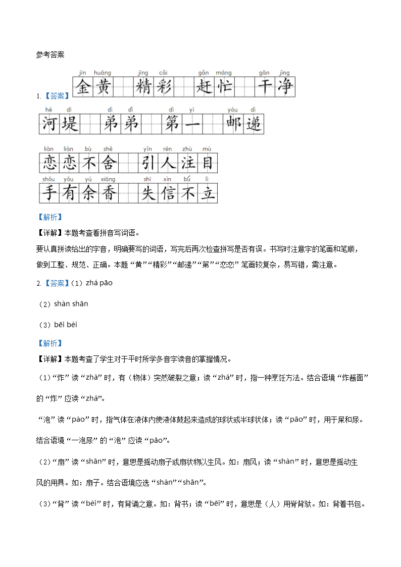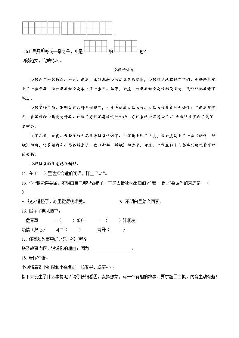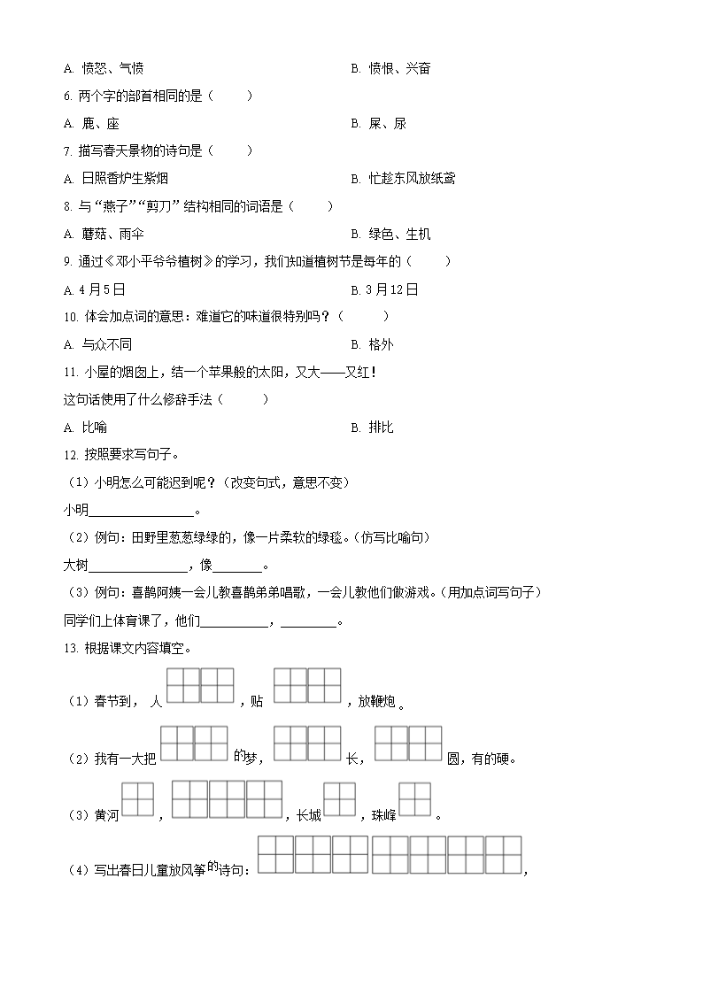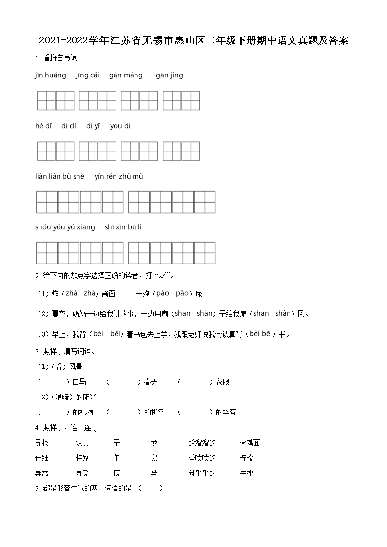 2021-2022学年江苏省无锡市惠山区二年级下册期中语文真题及答案(Word版)06-30