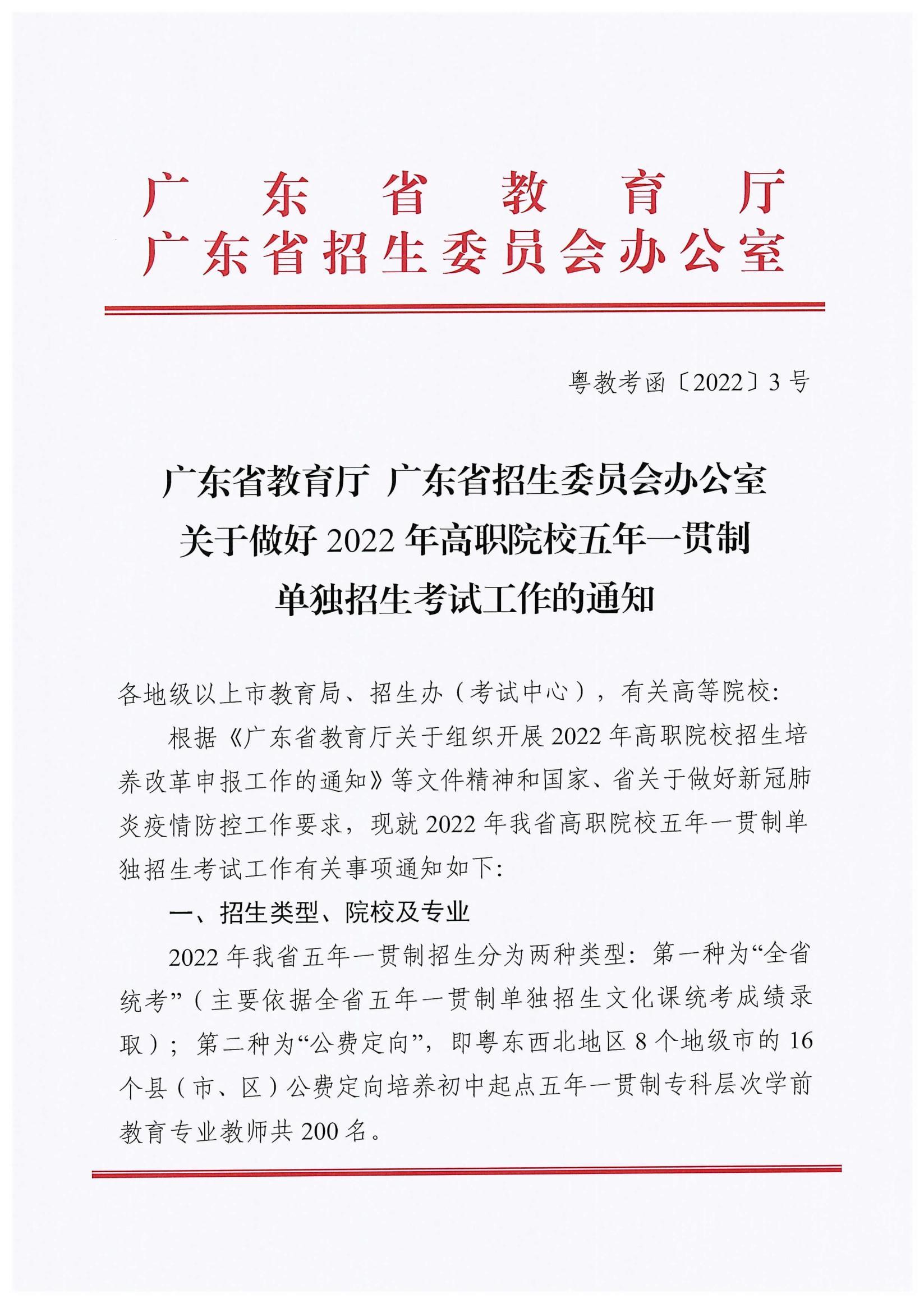 关于做好广东省2022年高职院校五年一贯制单独招生考试工作的通知05-03