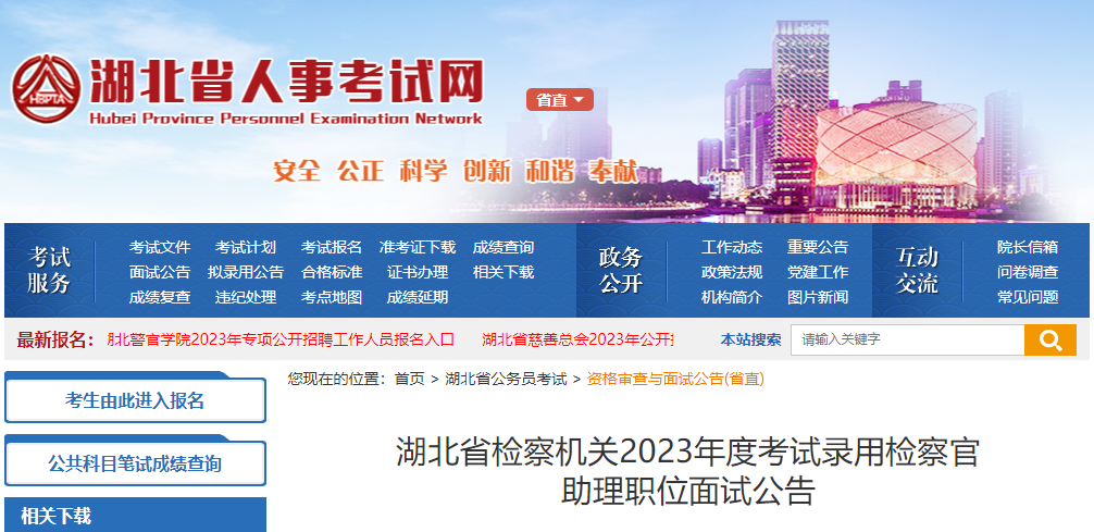 原文标题:湖北省检察机关2023年度考试录用检察官助理职位面试公告