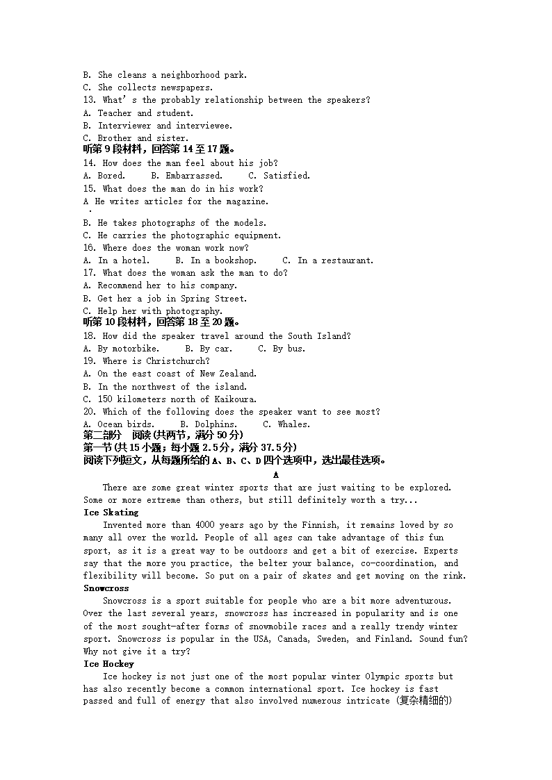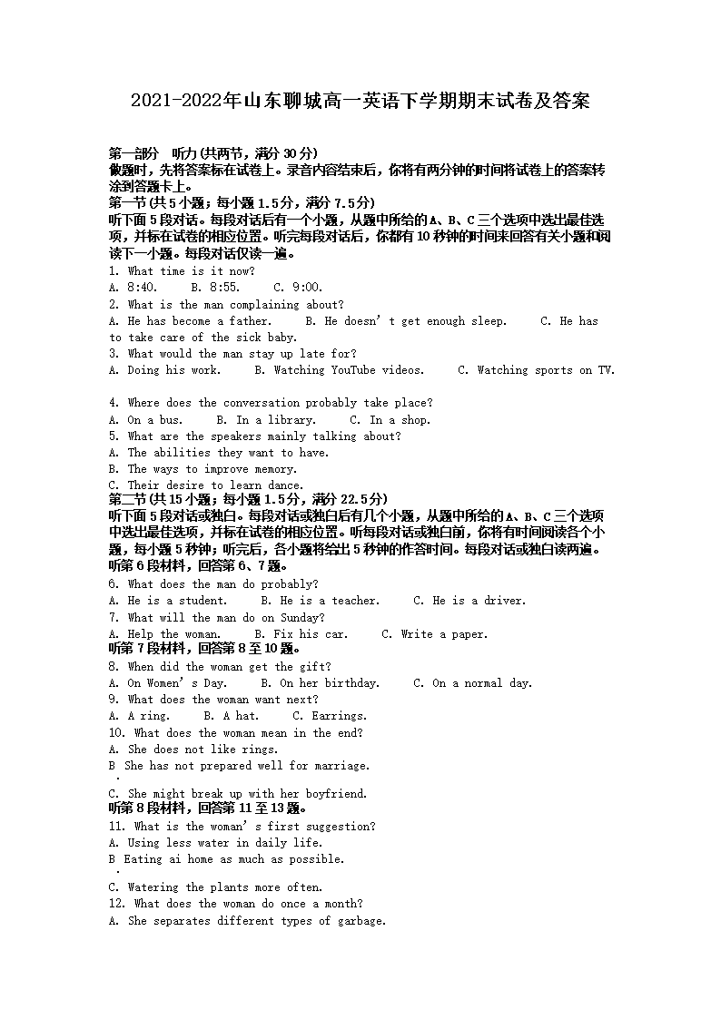 【文档预览】 文档大全网整理发布2021-2022年山东聊城高一英语下学期期末试卷及答案(Word版),前五页预览如下:
