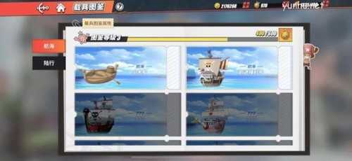 1. 首先在玩家刚刚进入游戏的时候,系统会默认赠送一支小木船,这个小木船只能用于玩家前期的升级中,因为它实在太简陋了,如果玩家有能力的话,在后期一定要将其换掉。除了这个小木船之外,游戏内还有另外七款不同类型的船只,其中前进梅丽号以及千里阳光号都是通过完成主线任务获取的。