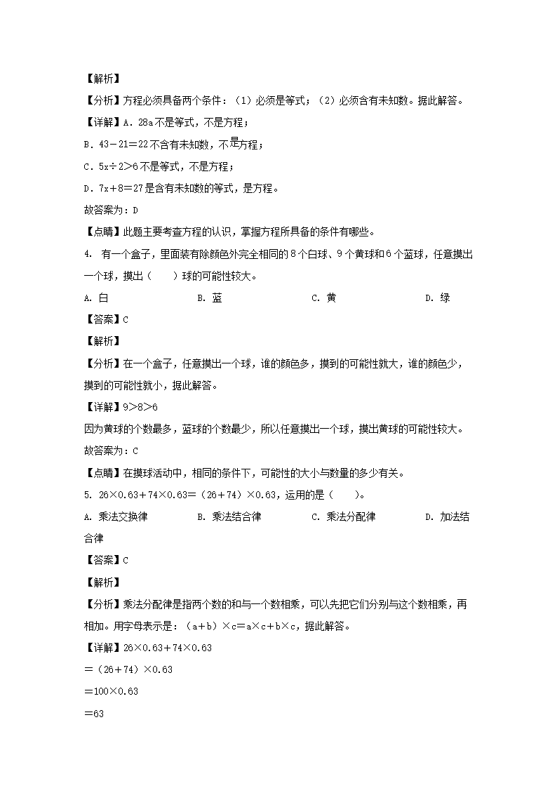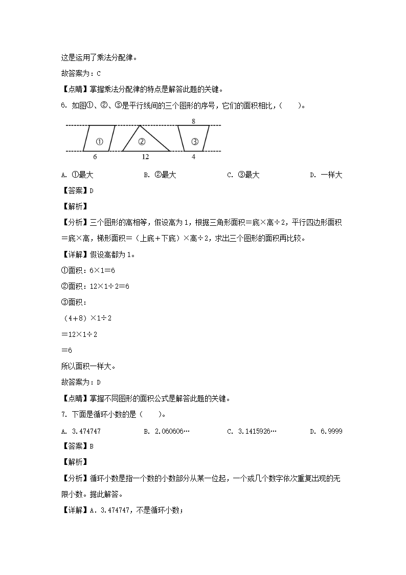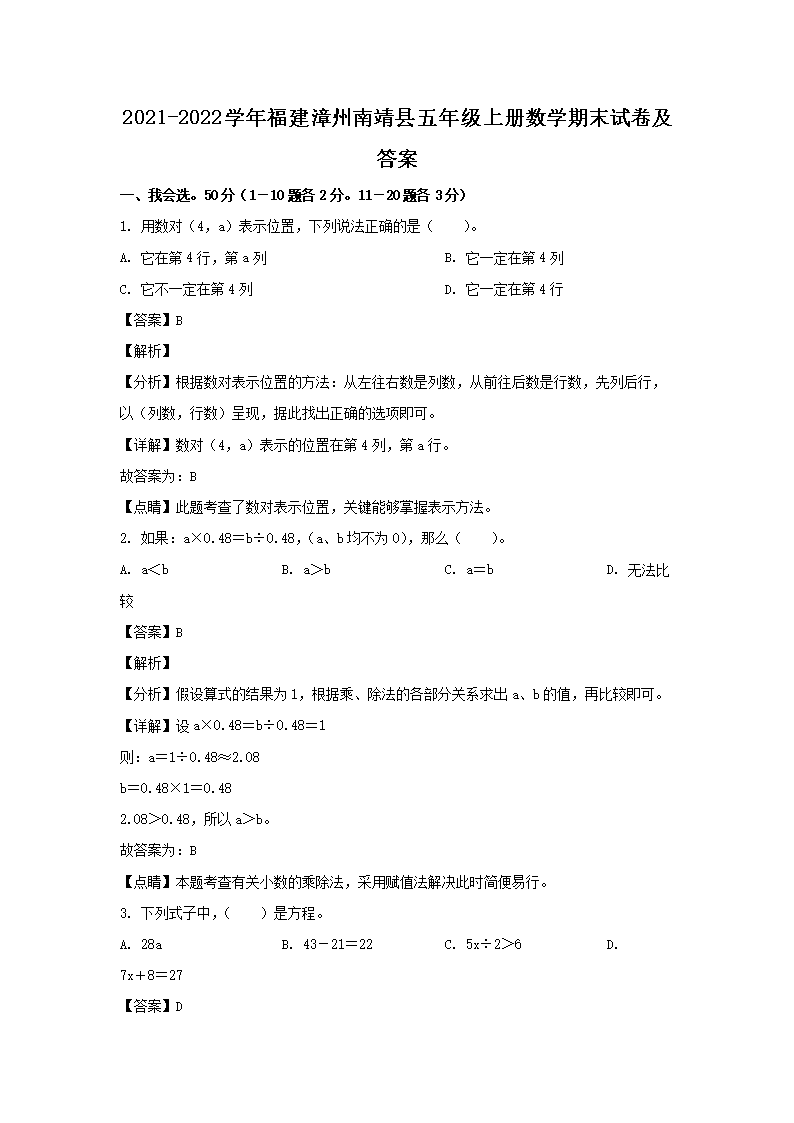 2021-2022学年福建漳州南靖县五年级上册数学期末试卷及答案(Word版)08-30