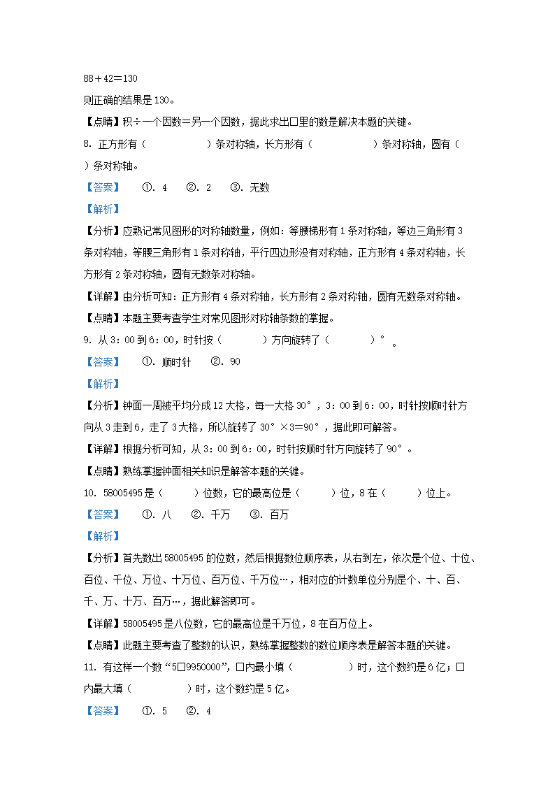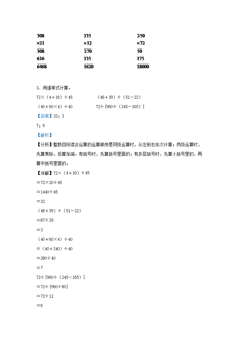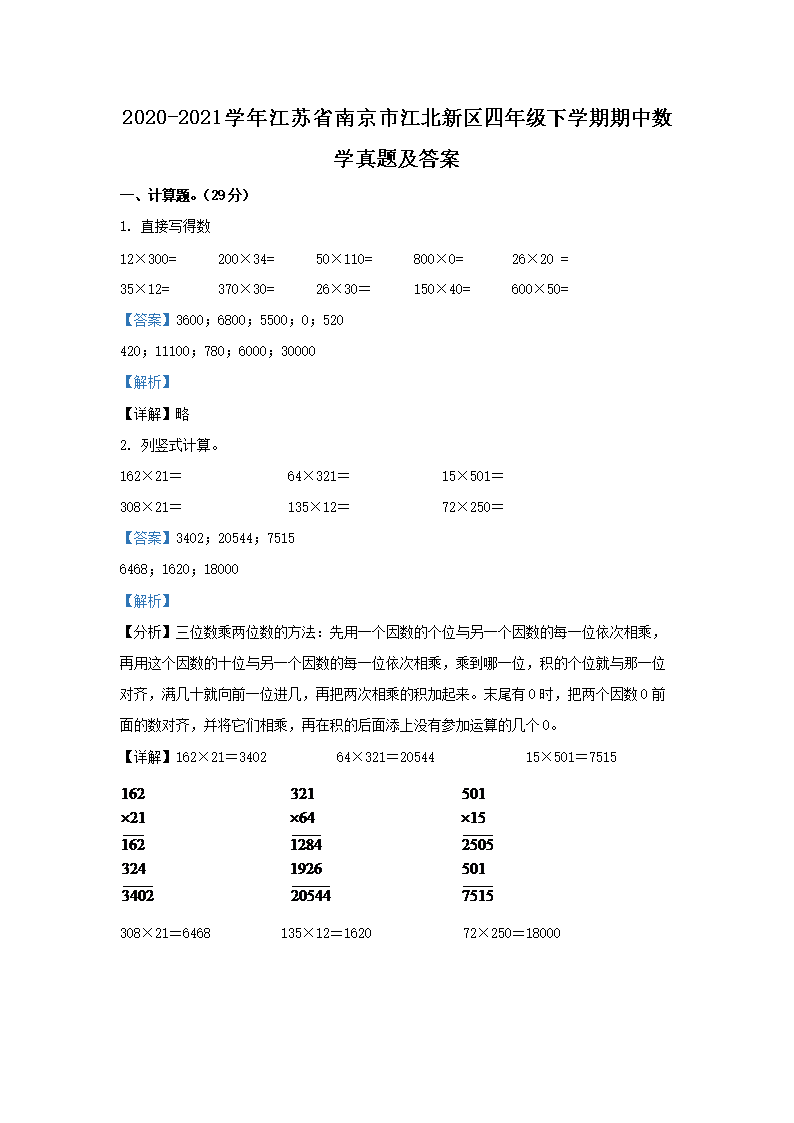 2020-2021学年江苏省南京市江北新区四年级下学期期中数学真题及答案(Word版)07-12