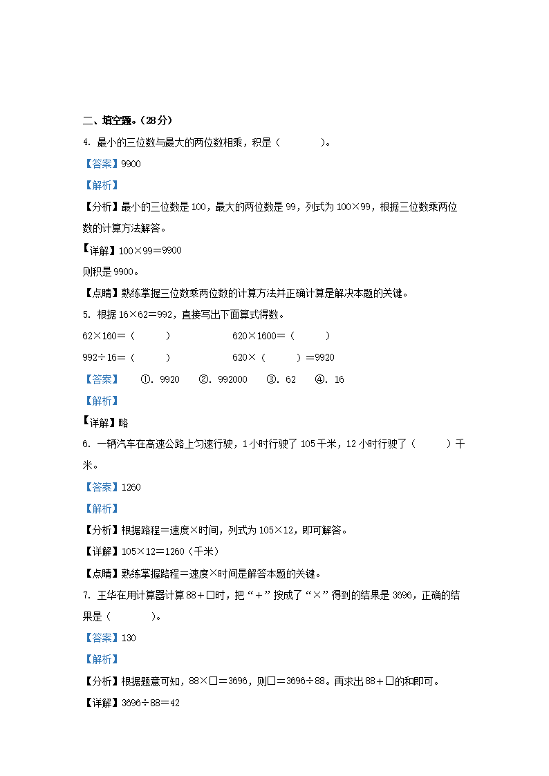 【文档预览】 文档大全网整理发布2020-2021学年江苏省南京市江北新区四年级下学期期中数学真题及答案(Word版),前五页预览如下: