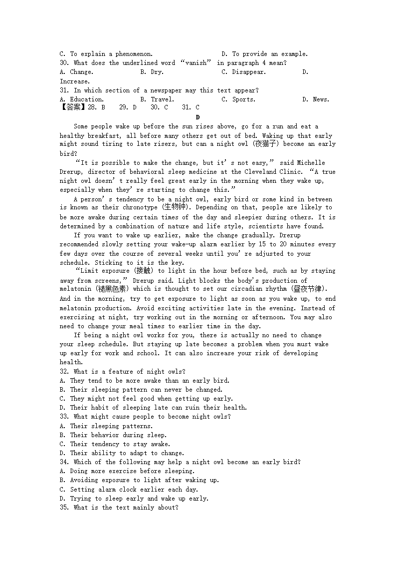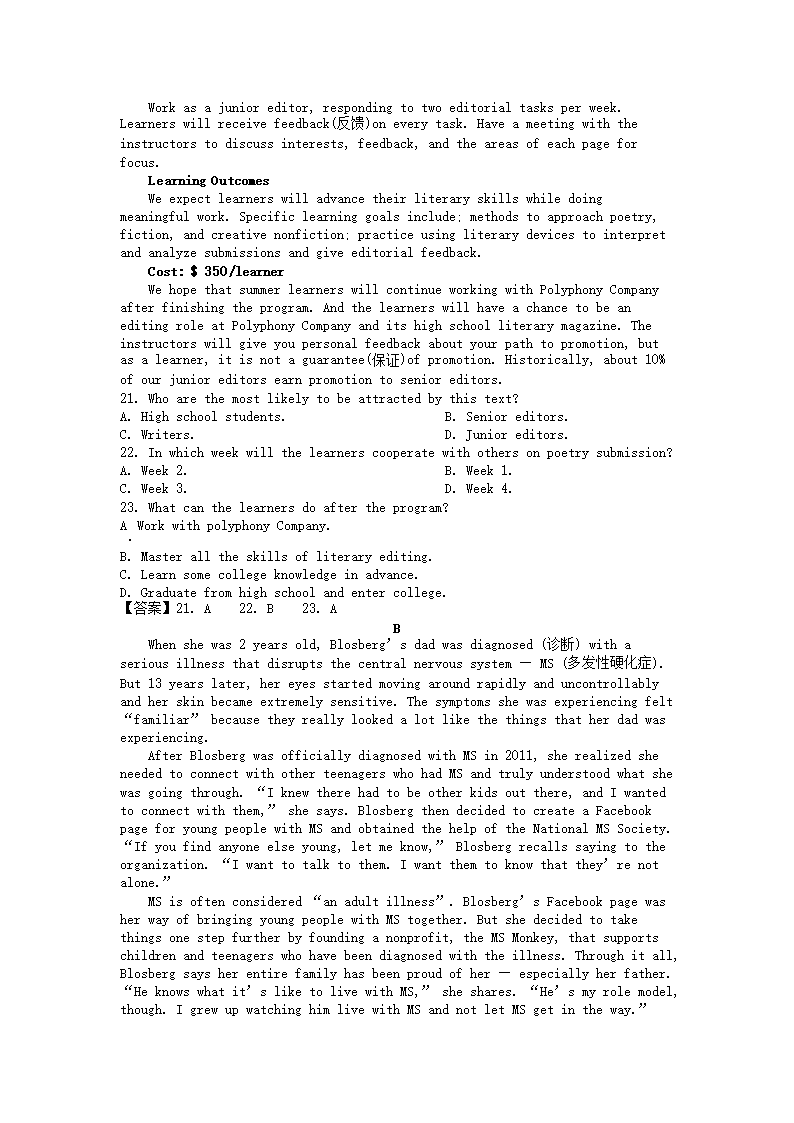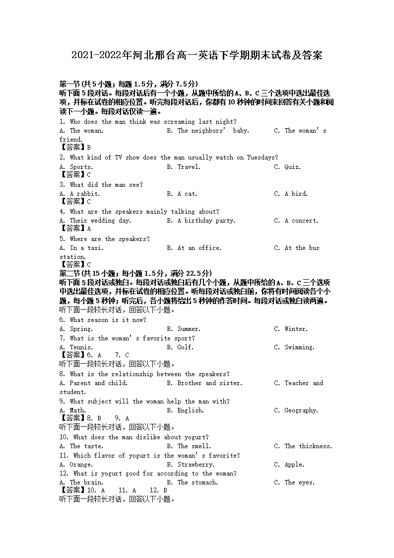 【文档预览】 文档大全网整理发布2021-2022年河北邢台高一英语下学期期末试卷及答案(Word版),前五页预览如下: