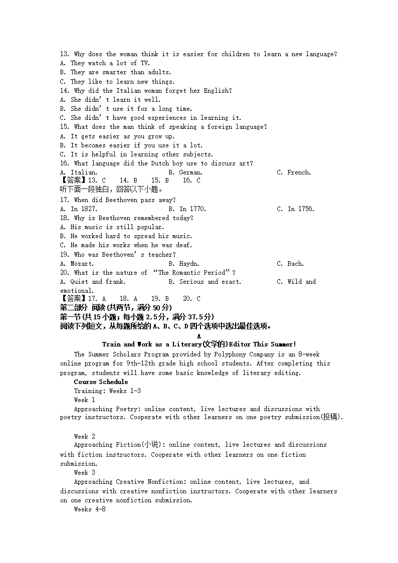 2021-2022年河北邢台高一英语下学期期末试卷及答案(Word版)09-28