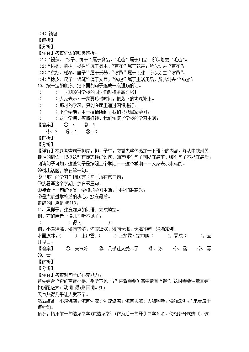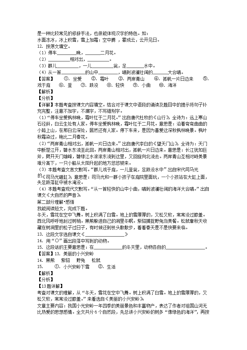 2020-2021学年北京市海淀区部编版三年级上册期末考试语文试卷及答案(Word版)07-28