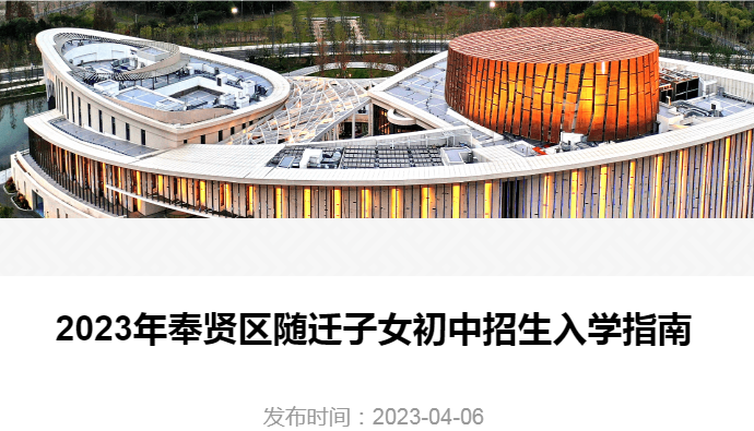 原文标题:2023年奉贤区随迁子女初中招生入学指南
